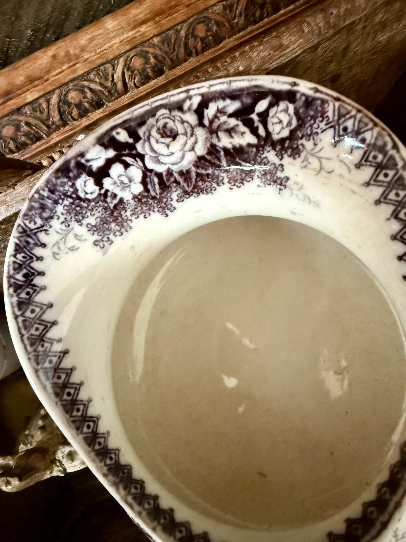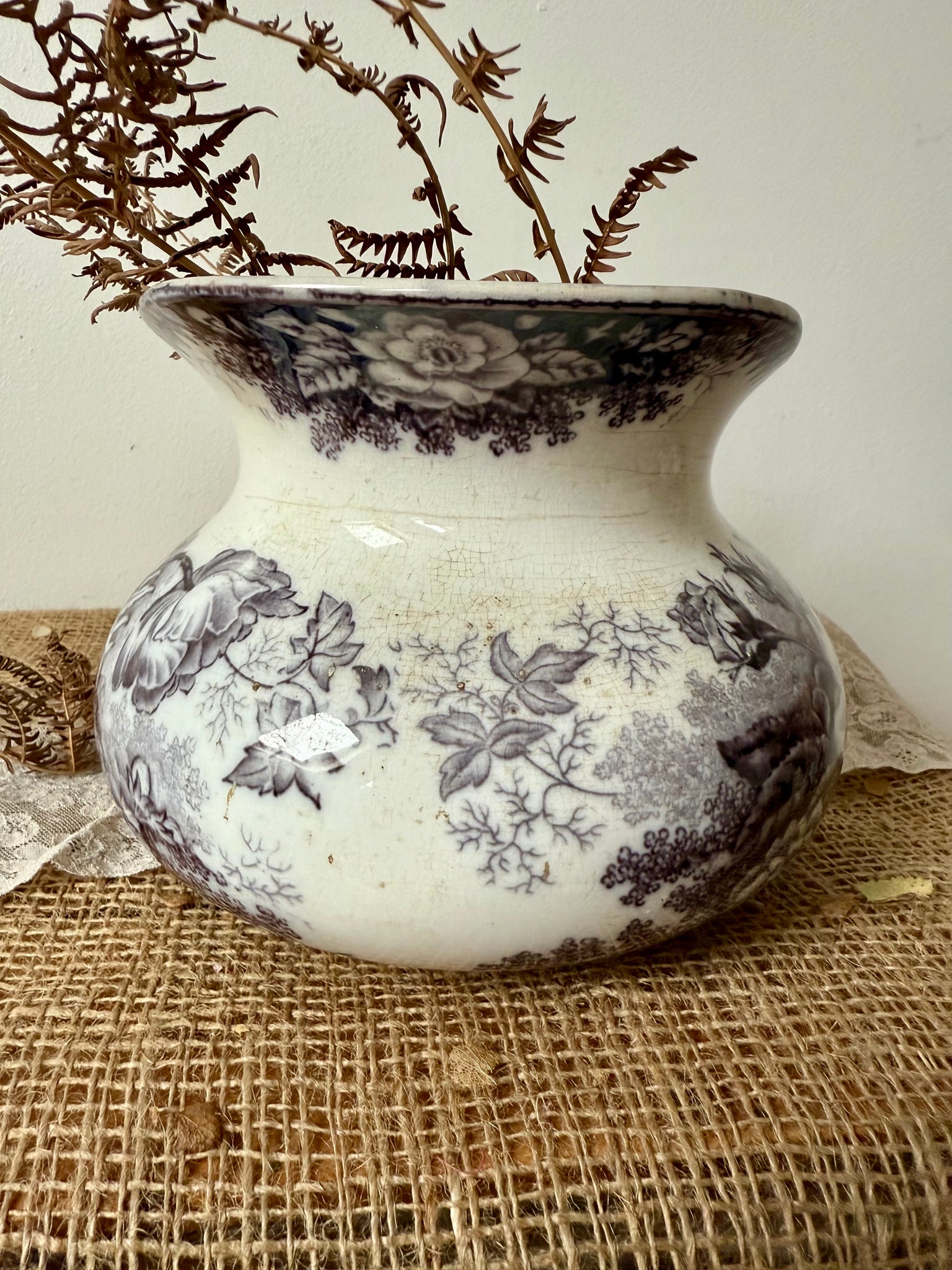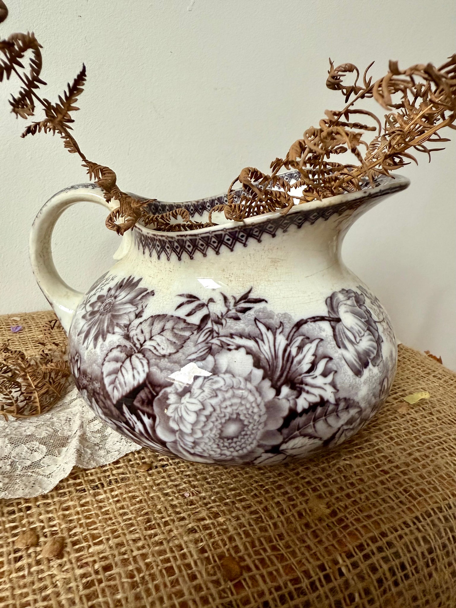 Sarreguimes Jardiniere tubby ironstone jug. A very different colour way to the normal pinks and blues, a super monotone one, I really love this tempted to put it in my cupboard beautifully crazed and slightly buttery.