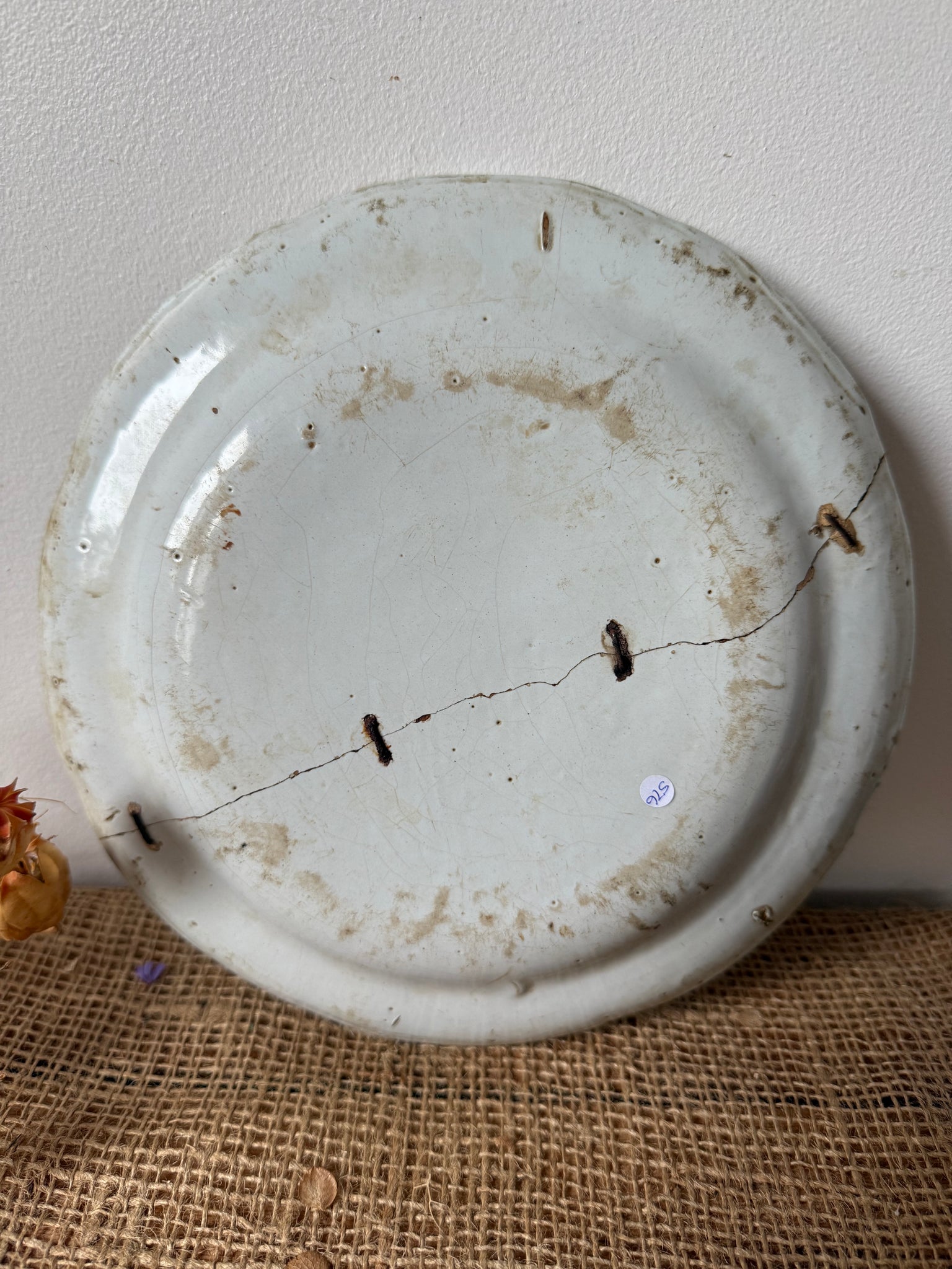 Beautiful French stapled plate 23 cm has obvious knocks and dings but quite a rare piece in lovely blues pink and greens very pretty