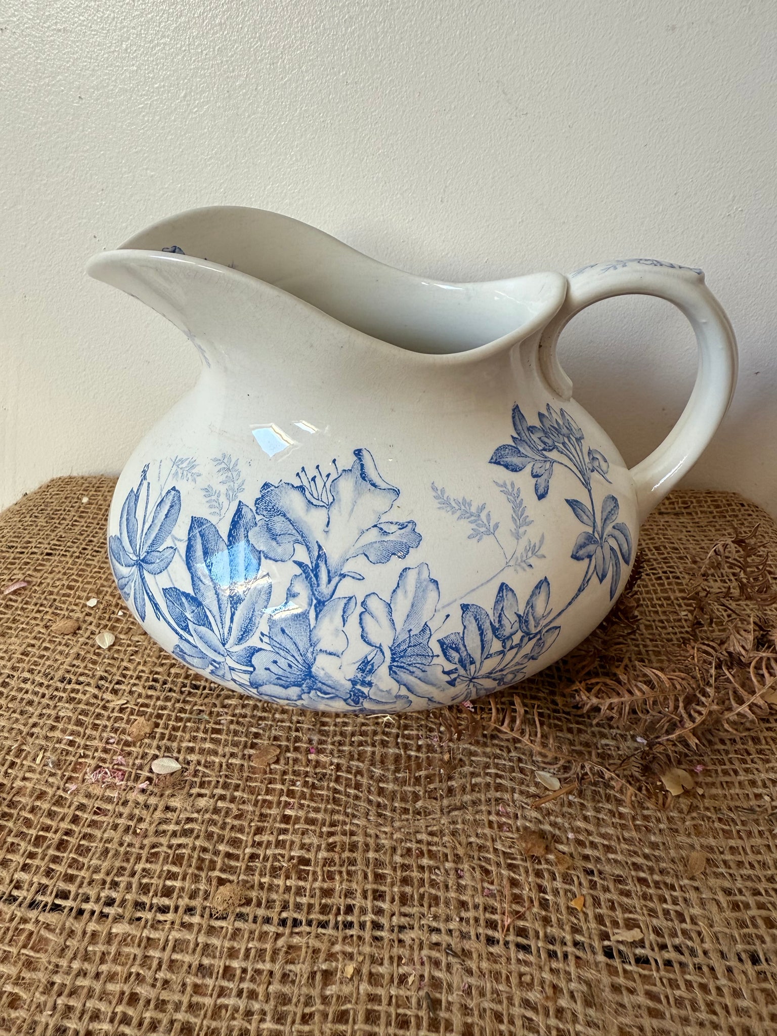 If you followed us for awhile you will know that we love these French vintage Tubby jugs and this one is a nice bright vibrant blue, decorated with florals and foliage in lovely condition 20 x 14 cm