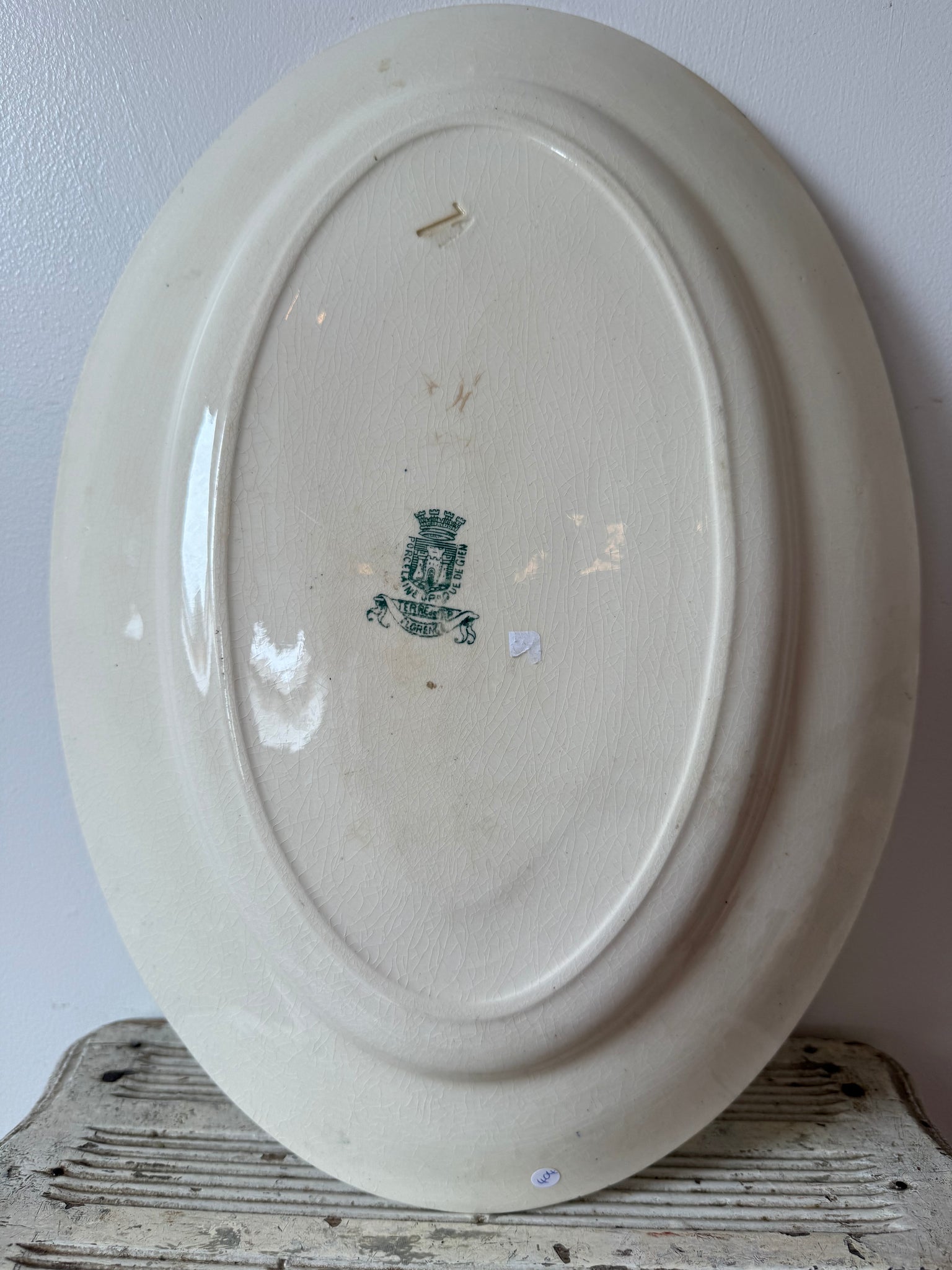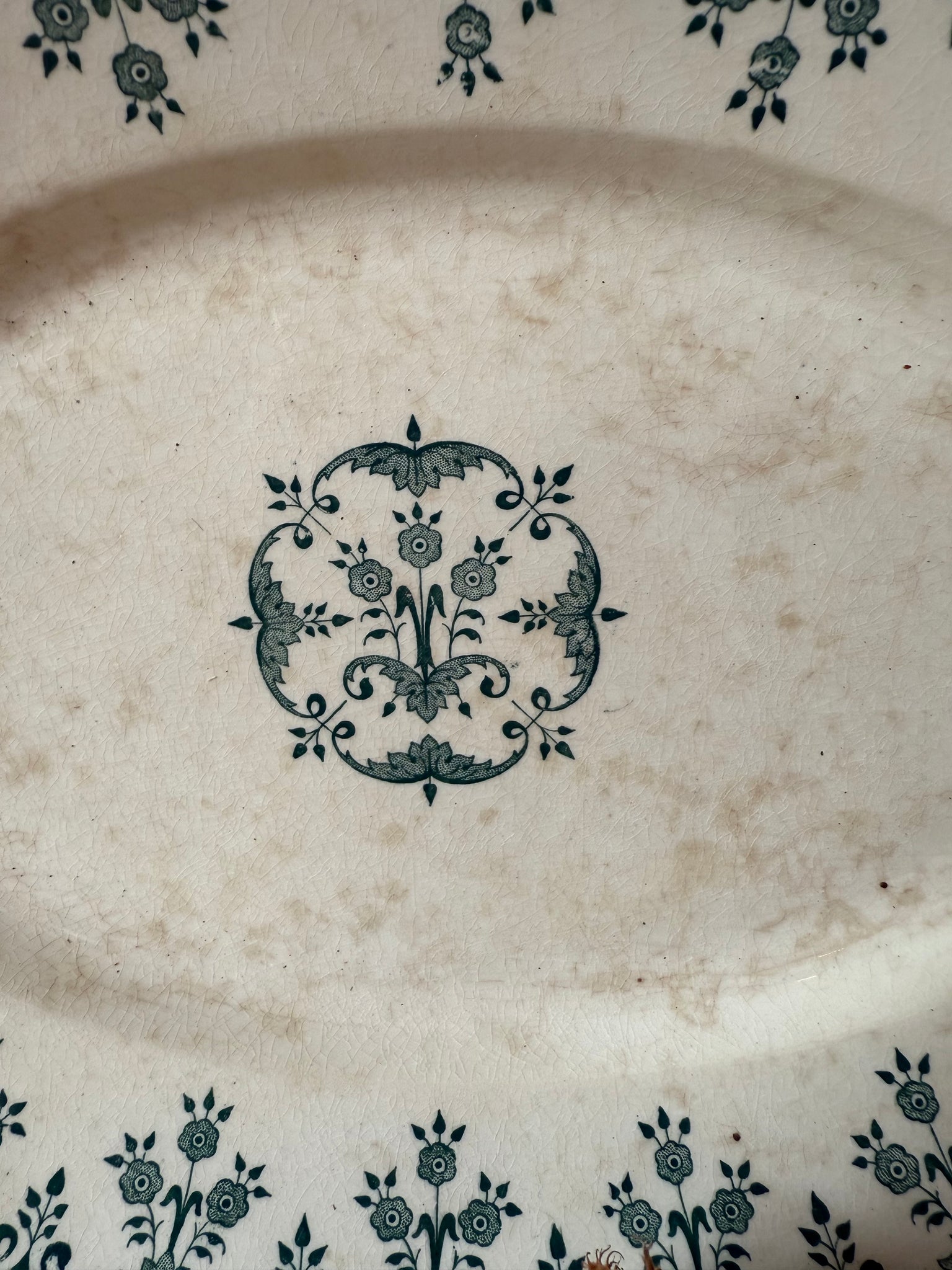 French green vintage oval platter with a very pretty pattern of ditsy florals gently stained 36 x 20cm
