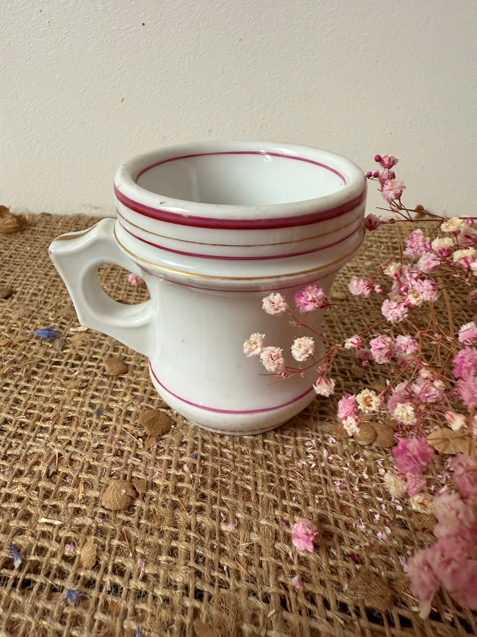 French vintage heavy pink rimmed Brulot cup.. in lovely condition
