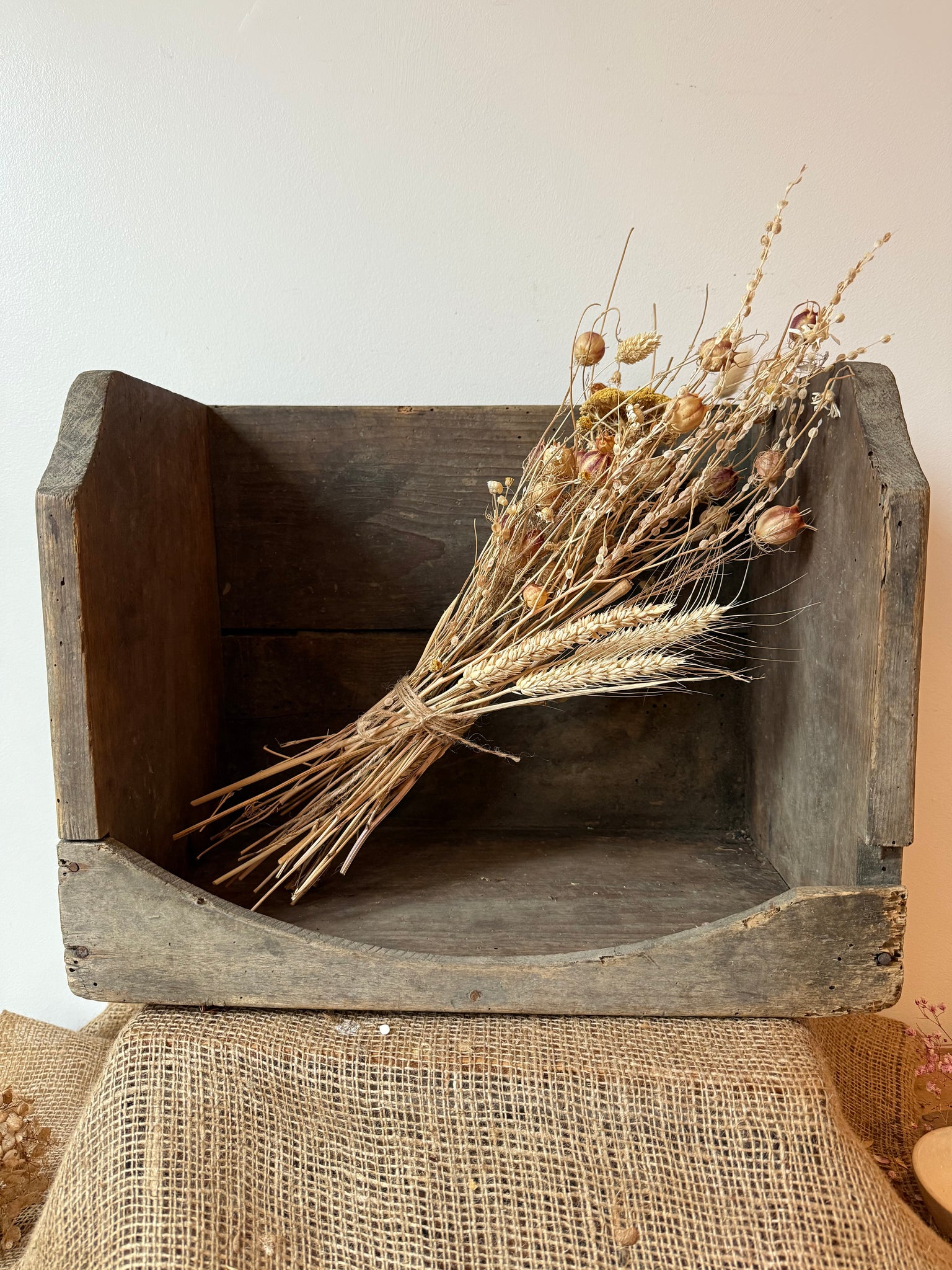 French vintage rustic wash box, it’s a lovely old heavy one. It has been treated for historic woodworm, these are always great as a shelf or just to display lovely things a good size 44 x 25 x 35cm