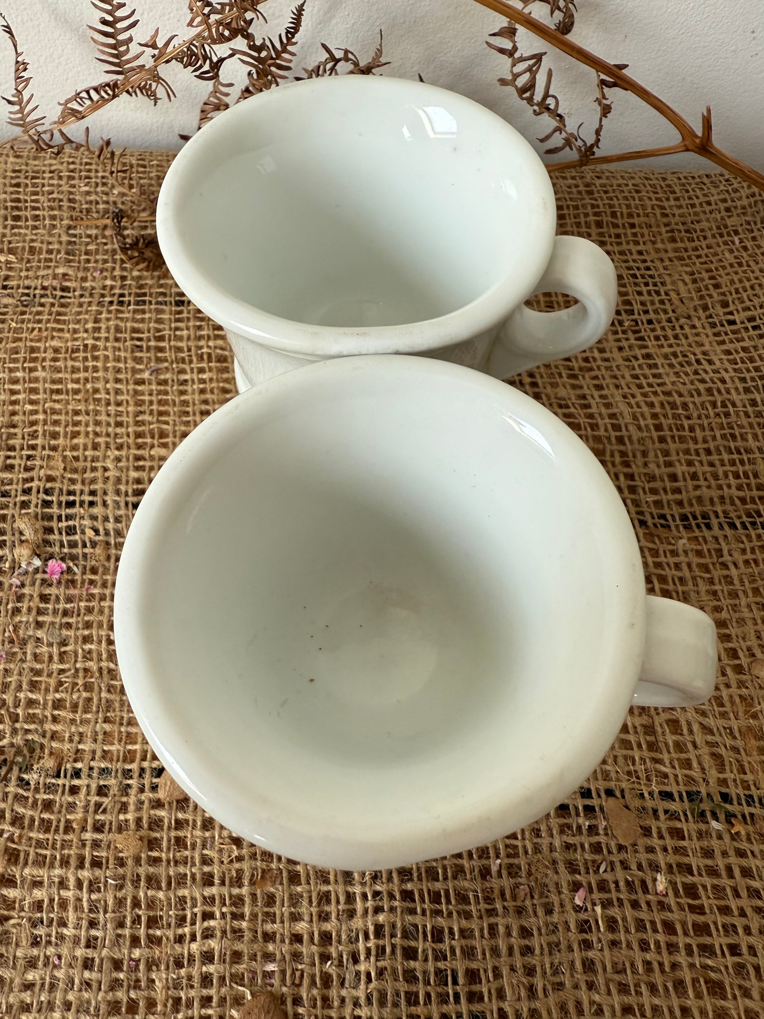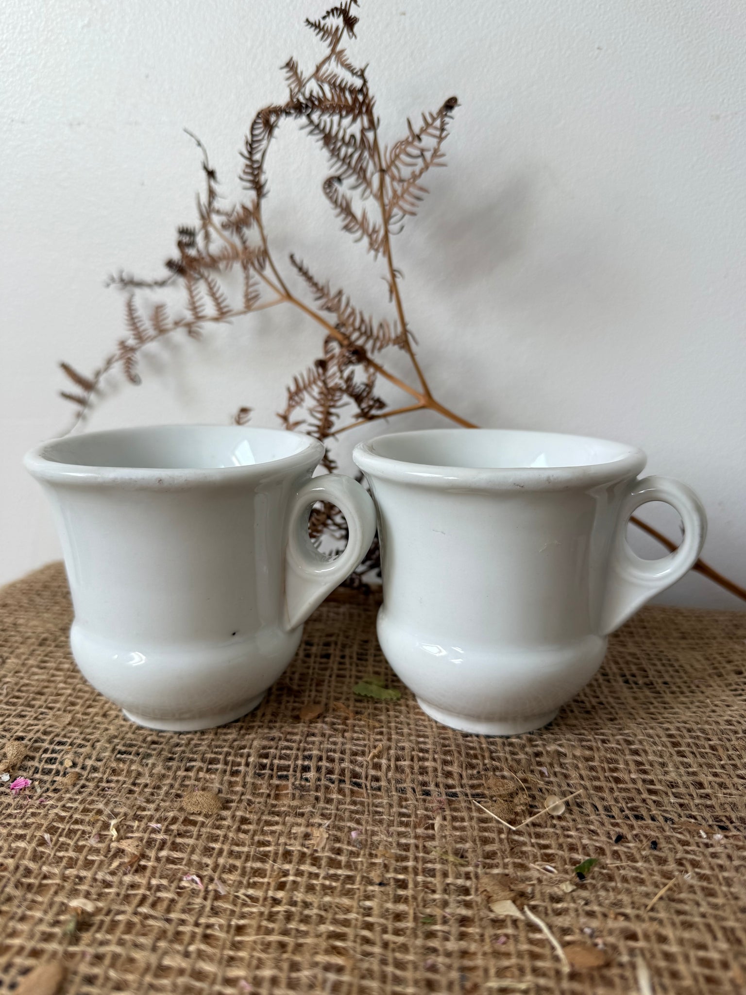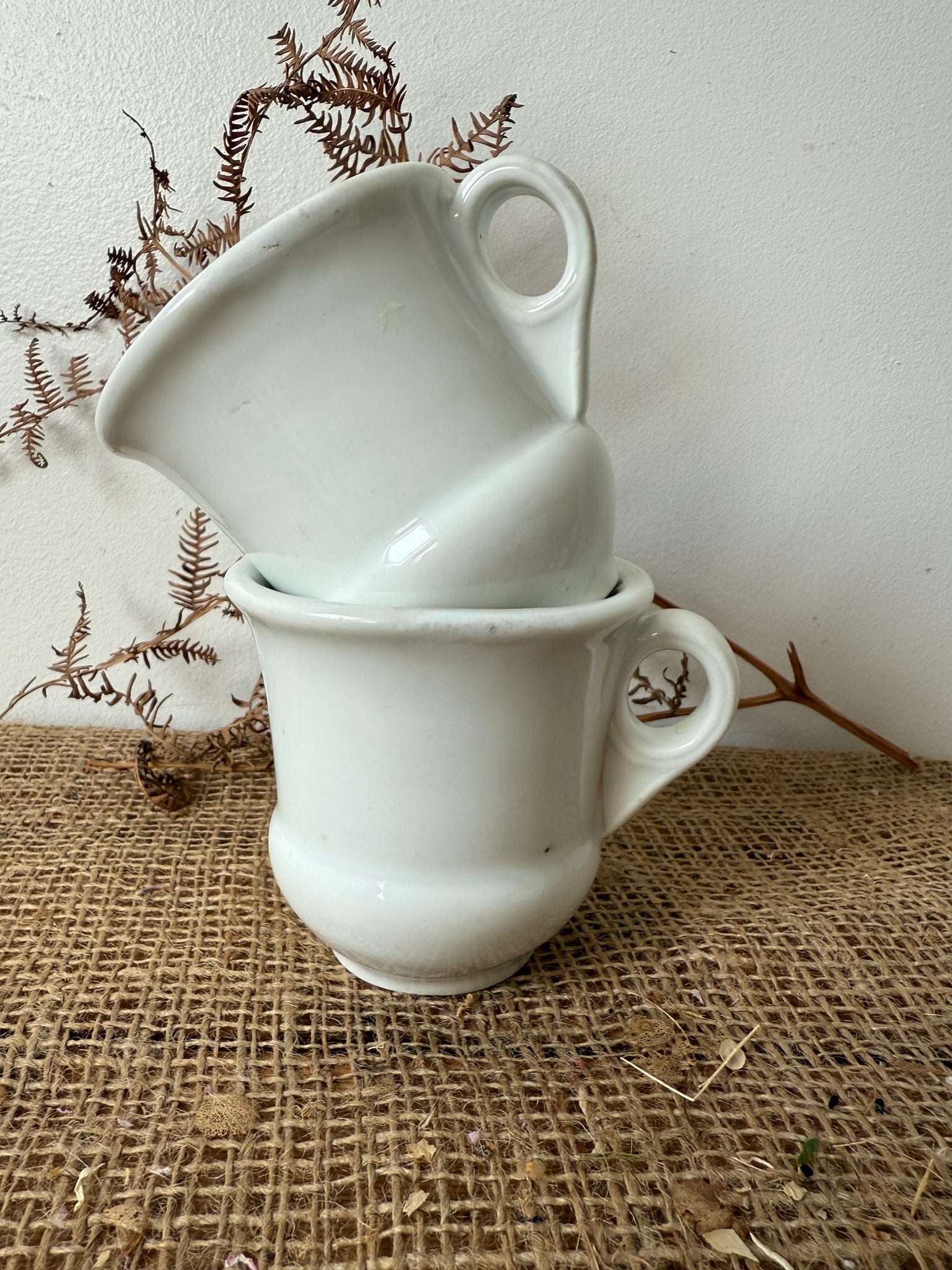 Heavy white old antique brulot cup, I have two available. There are really heavy such a great weight, such a classic design and crisp white. In amazing condition 8.5 x 10 cm to the handles