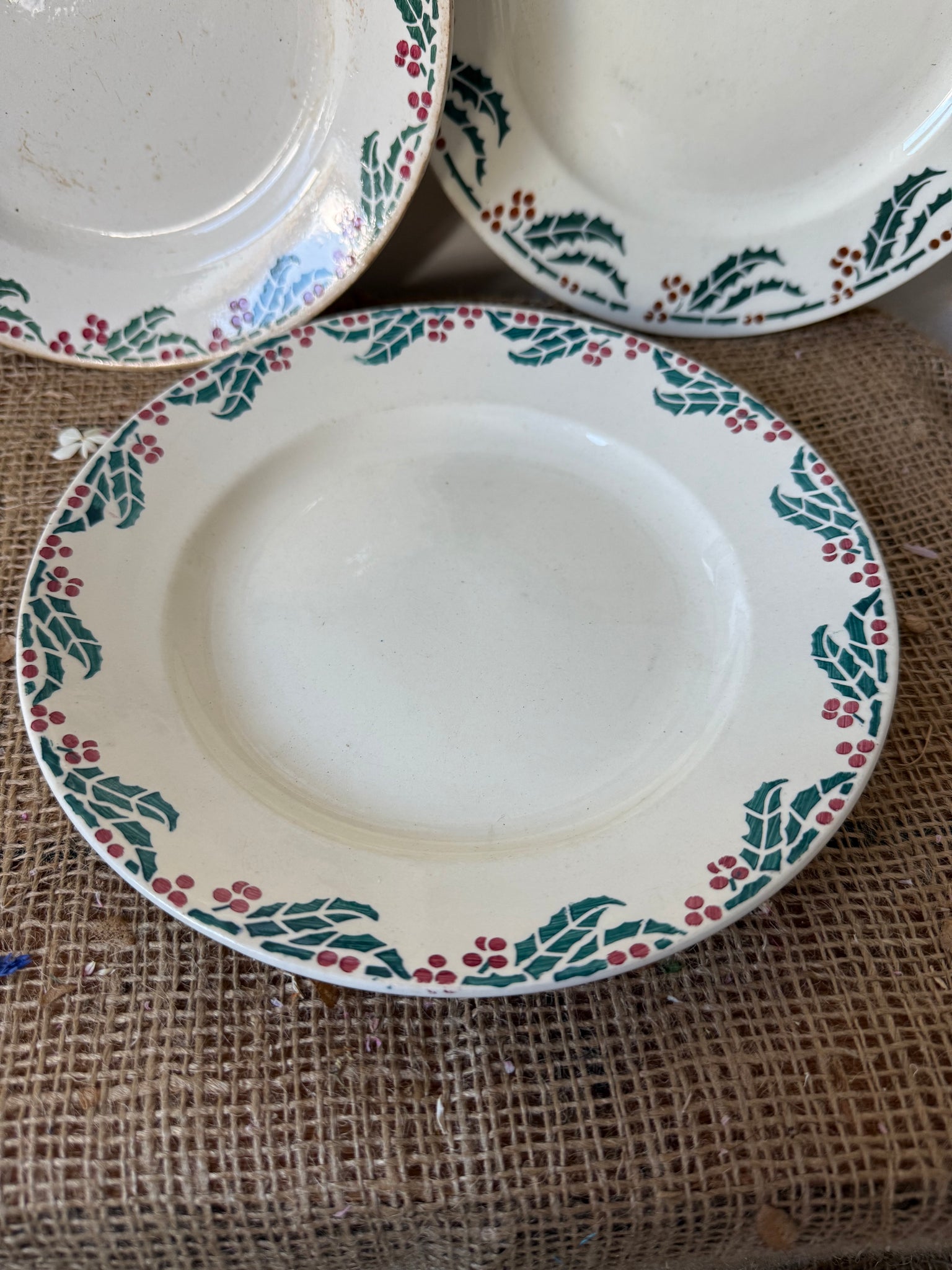 Been asked a lot for these French vintage Sarreguimes Houx plates 22 cm in great condition