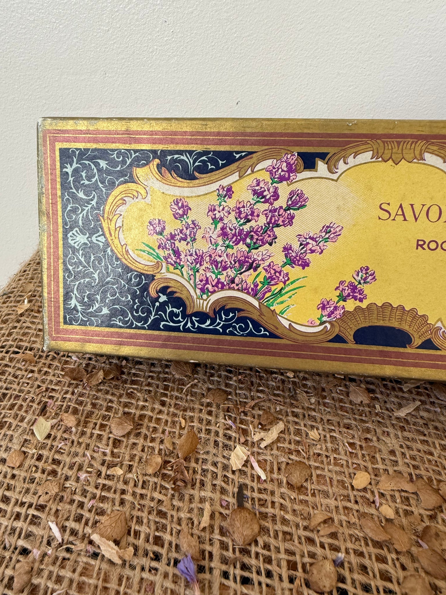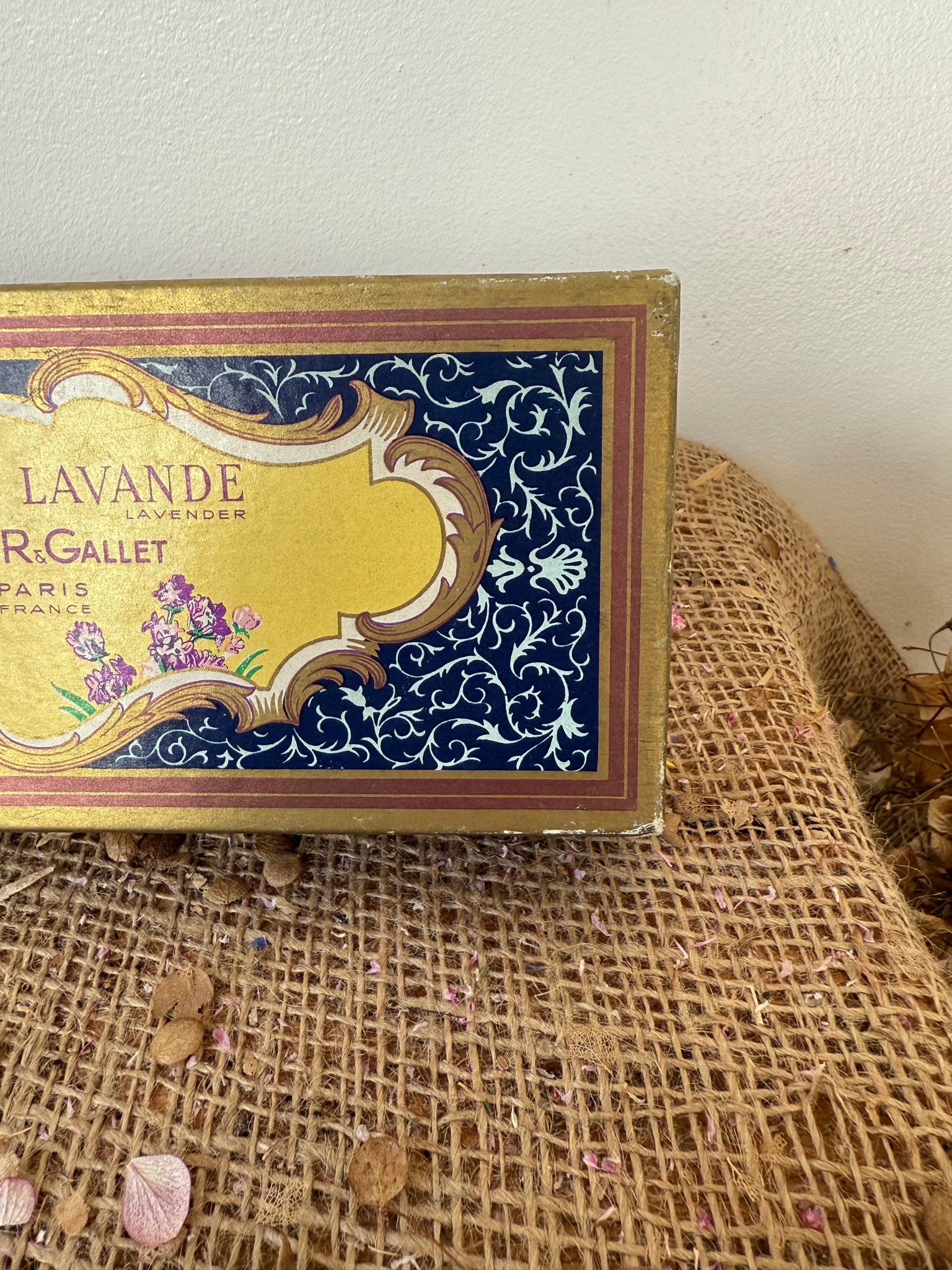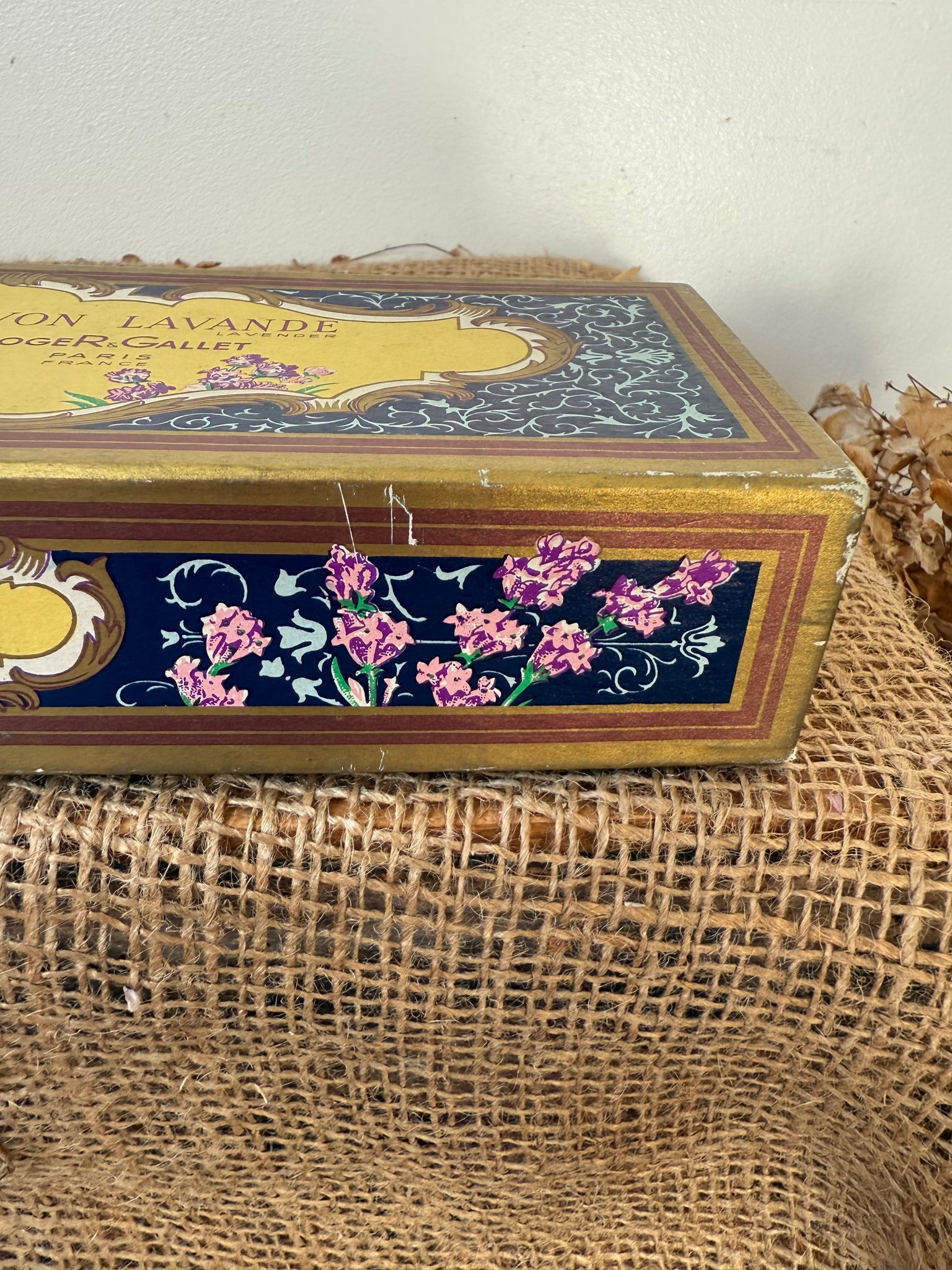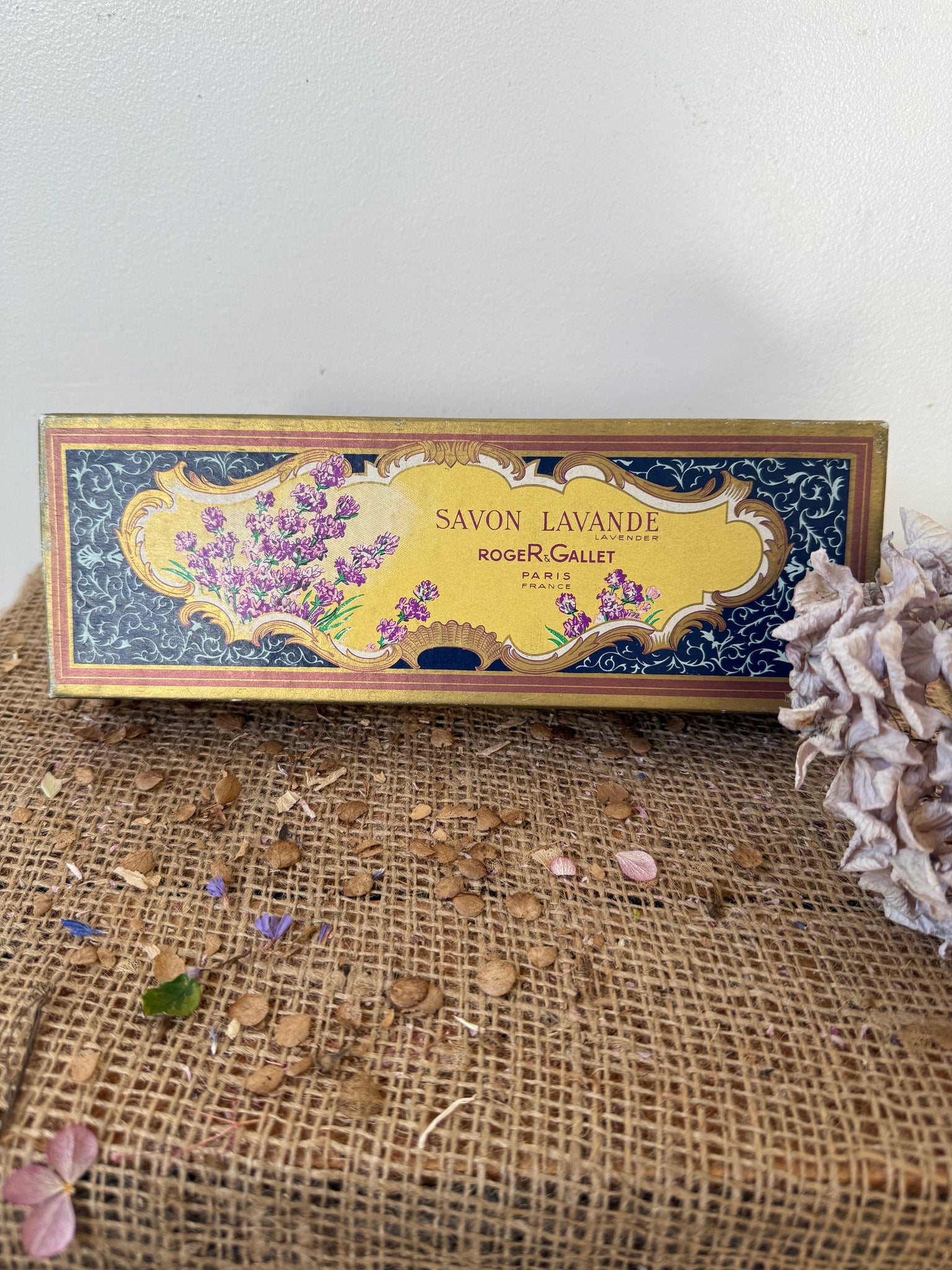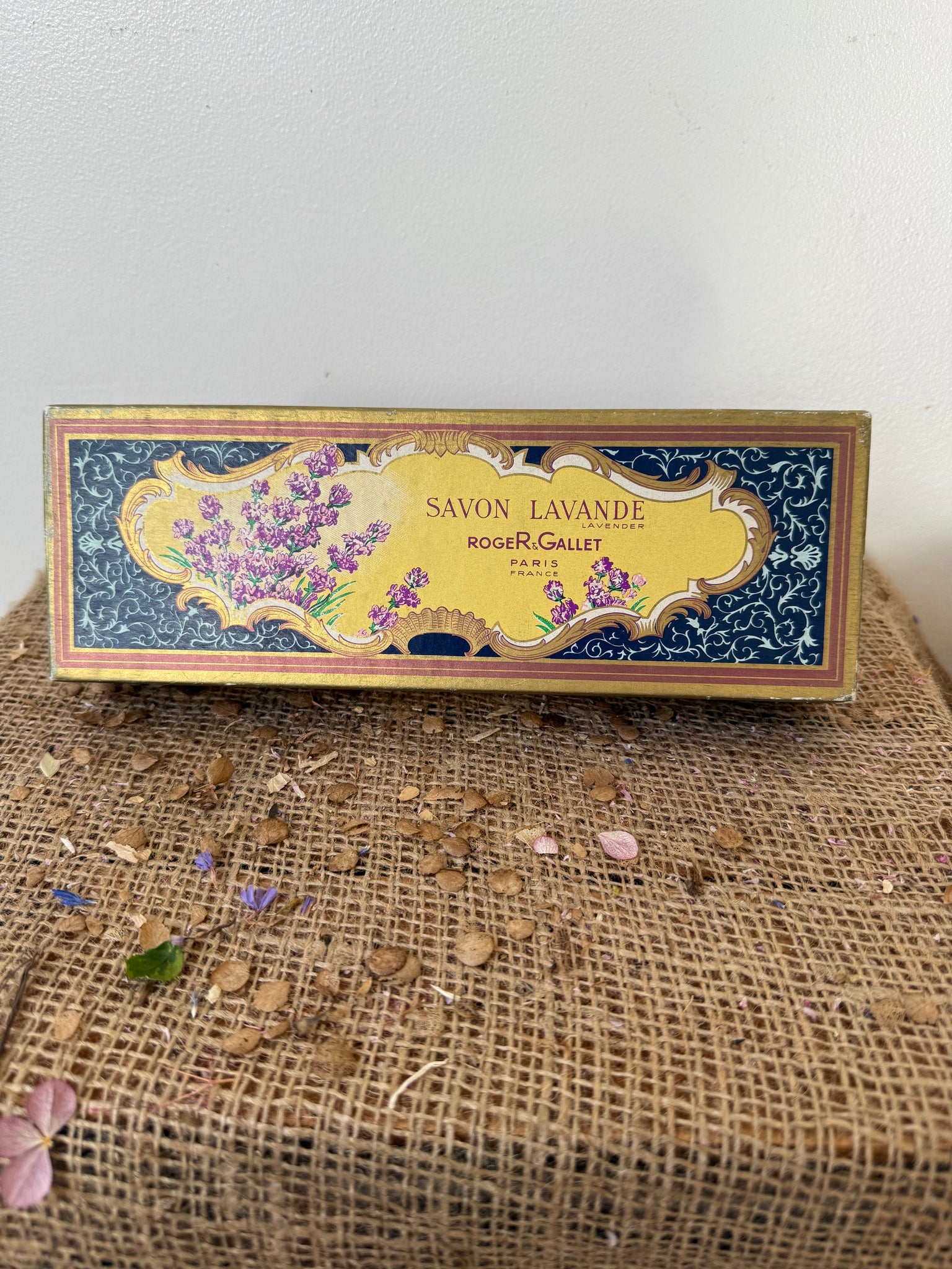 French vintage Roger and Gallet Lavender soap box, just so pretty. Something simple to pop on a shelf I thought of vintage 25.5 x 9 x 4 cm in great solid condition.