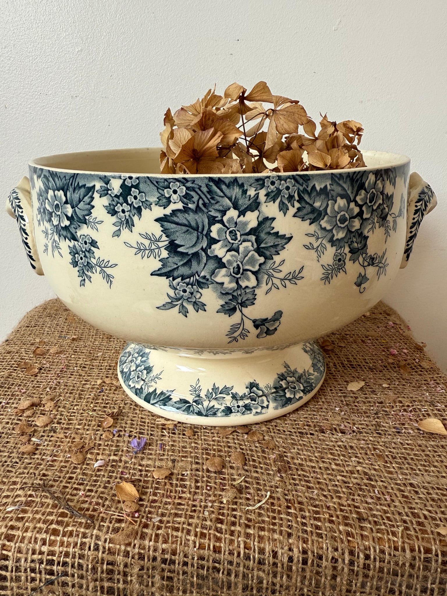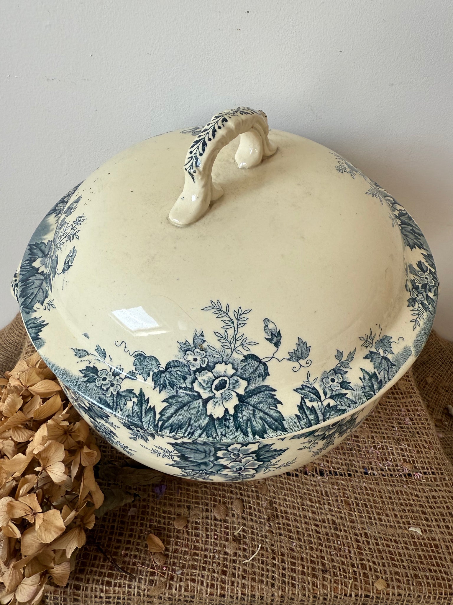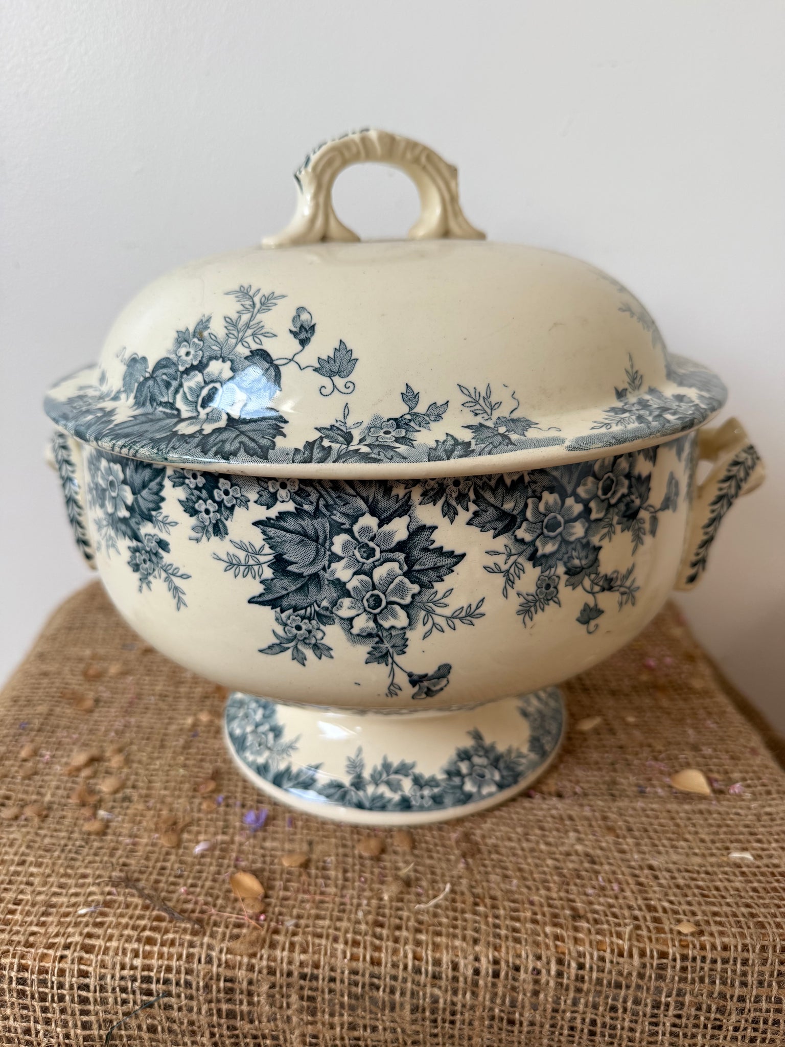 French Marie Louise large vintage soupiere, this is one from my own collection. I replaced it with a slightly smaller one in my cabinet but this one is stunning. It’s a super large one too a real stunning of Terre de fer 27cm approximately 30cm handle to handle with lid on.