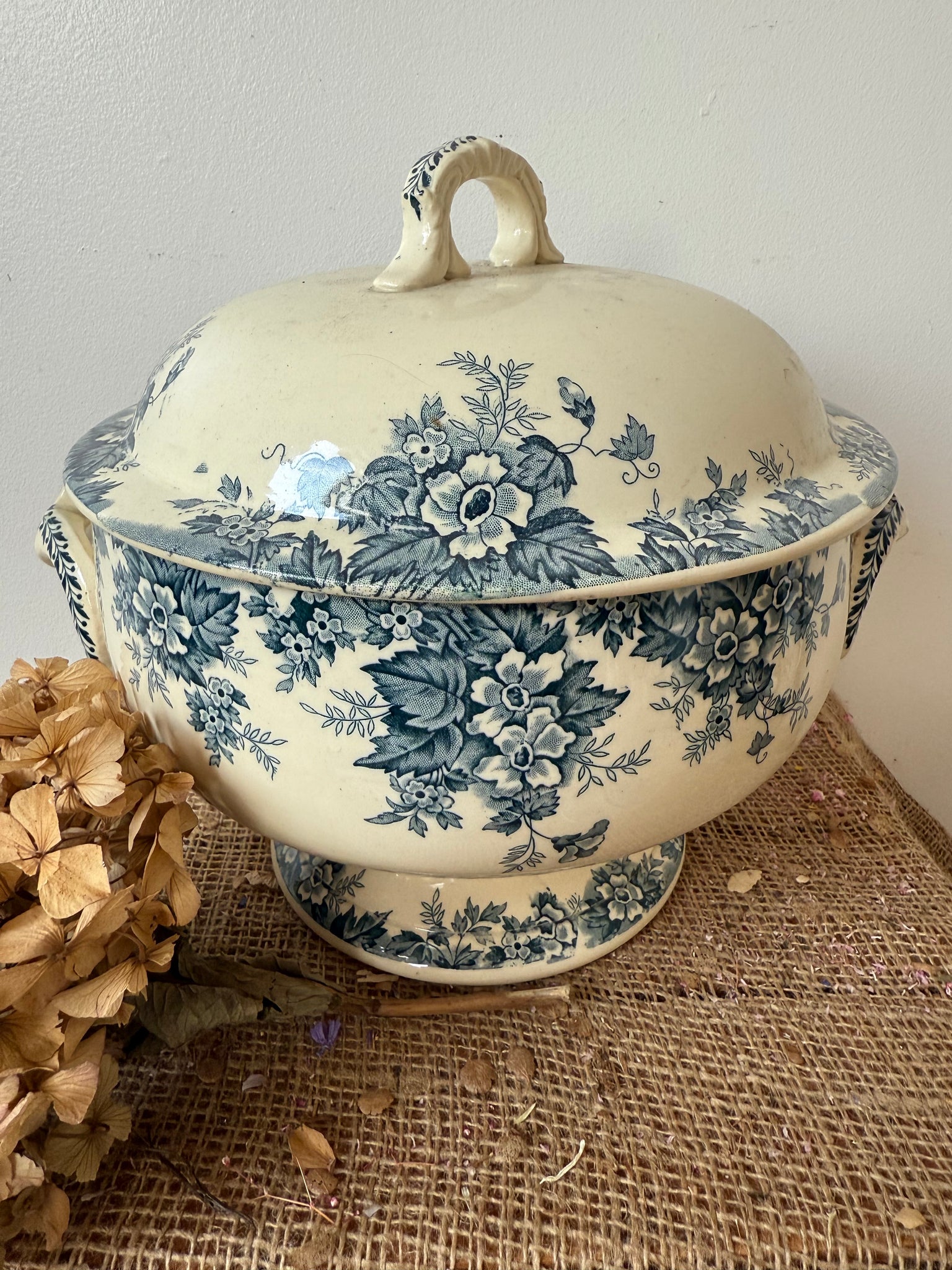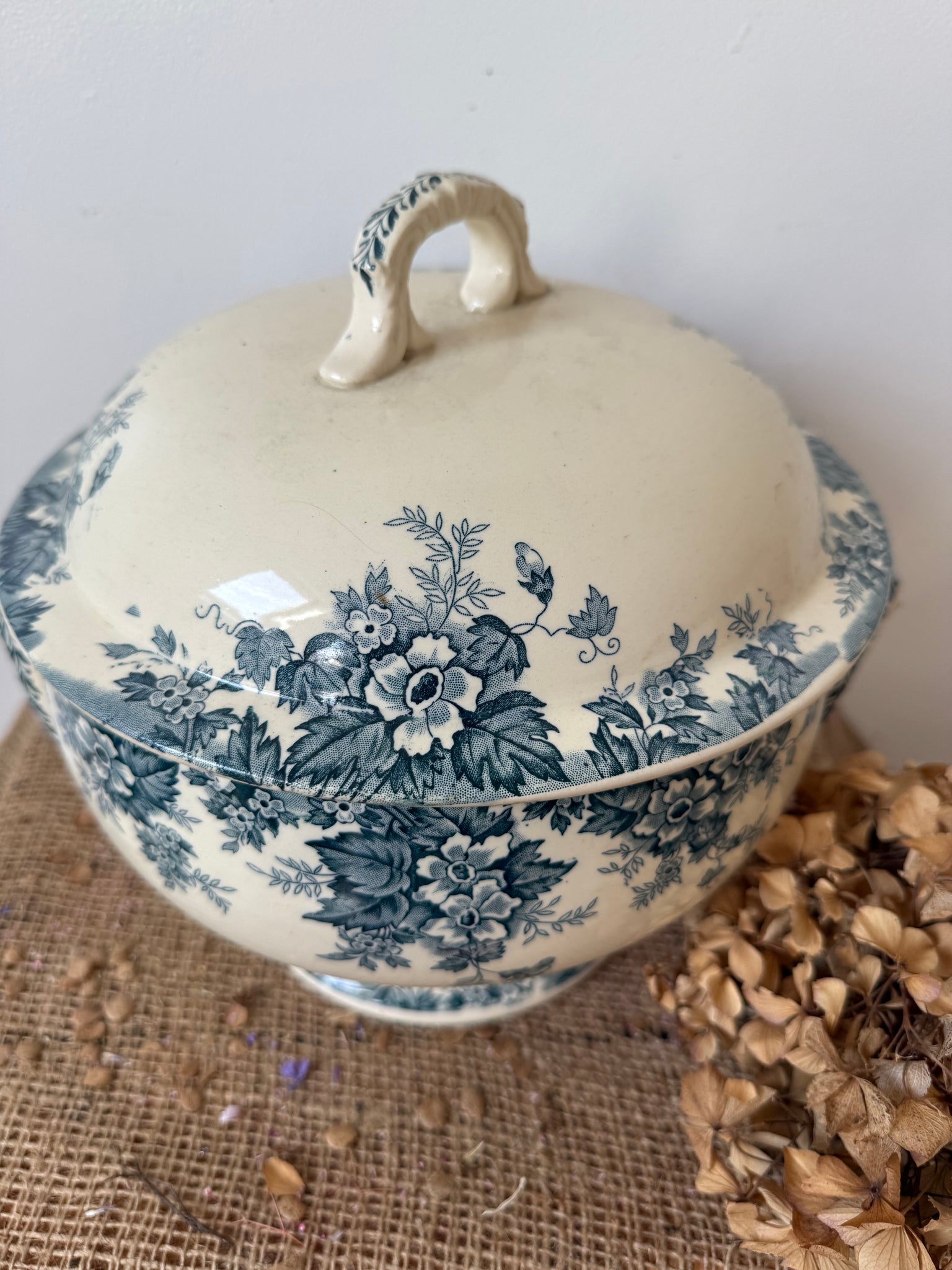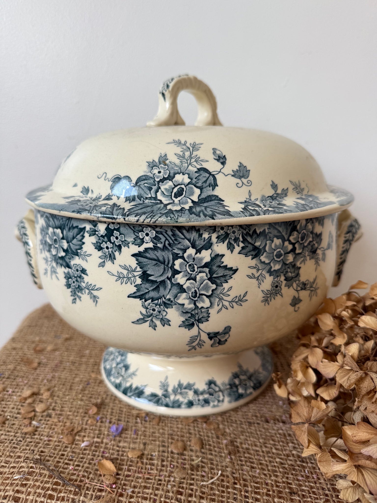 French Marie Louise large vintage soupiere, this is one from my own collection. I replaced it with a slightly smaller one in my cabinet but this one is stunning. It’s a super large one too a real stunning of Terre de fer 27cm approximately 30cm handle to handle with lid on.