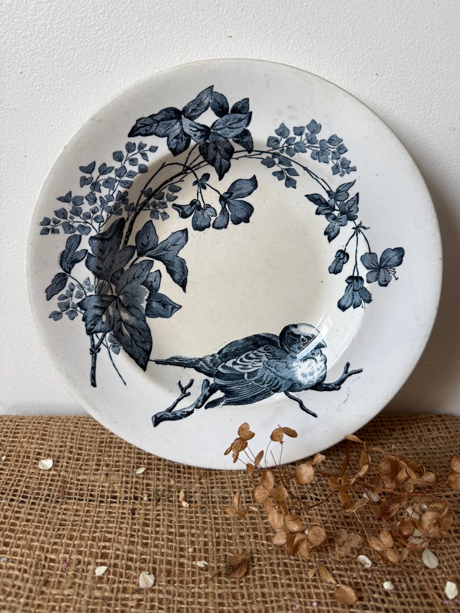 Lovely old vintage French plate Longwy plate beautifully decorated with this gorgeous bird..