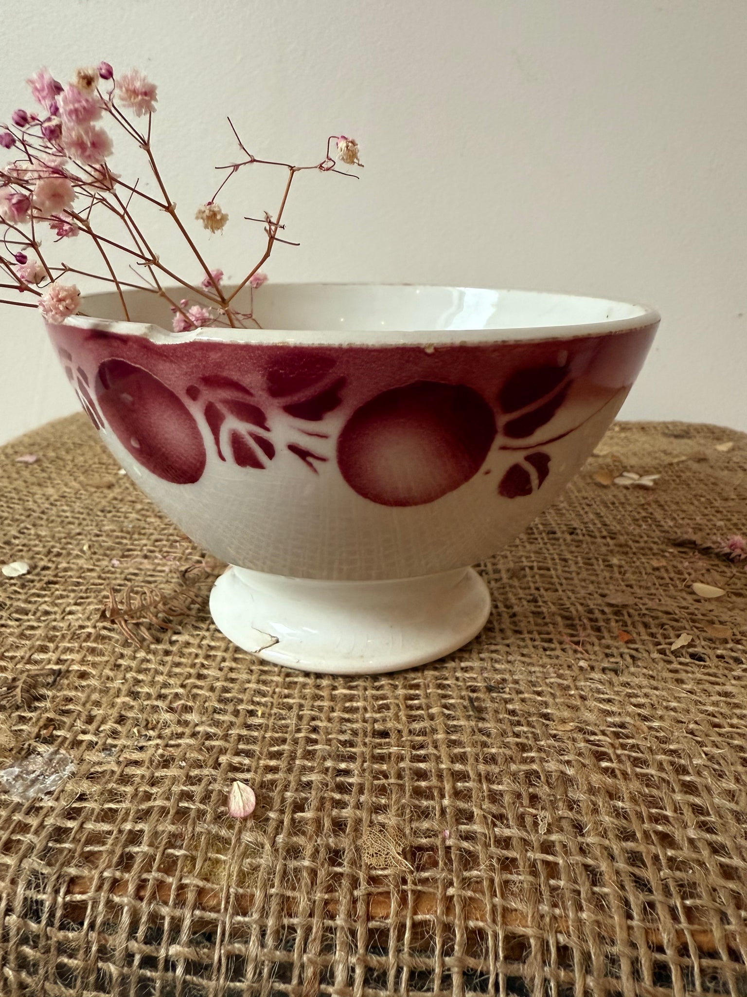French vintage Berries or cherries cafe au lait has a couple of nicks but a super pretty one 8 x 13cm