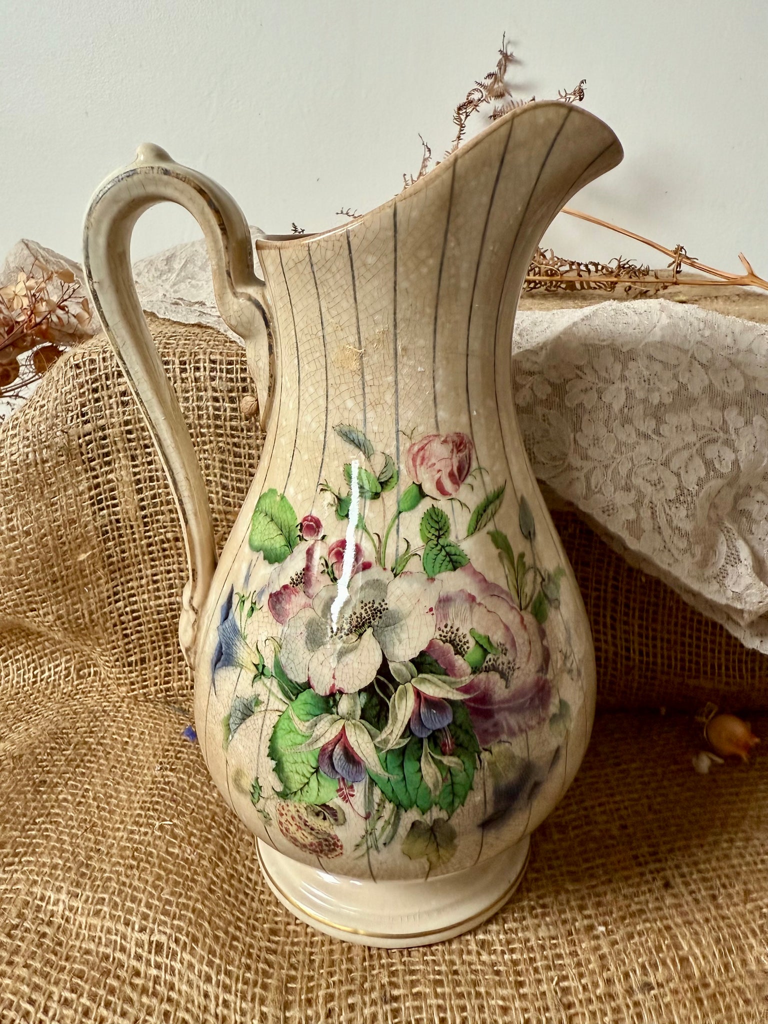 I had to put this on this morning. The skies are so laden and grey and just needed something bright to lighten the day slightly. This is a beautiful floral buttery ironstone jug in the most fabulous condition 26 cm.