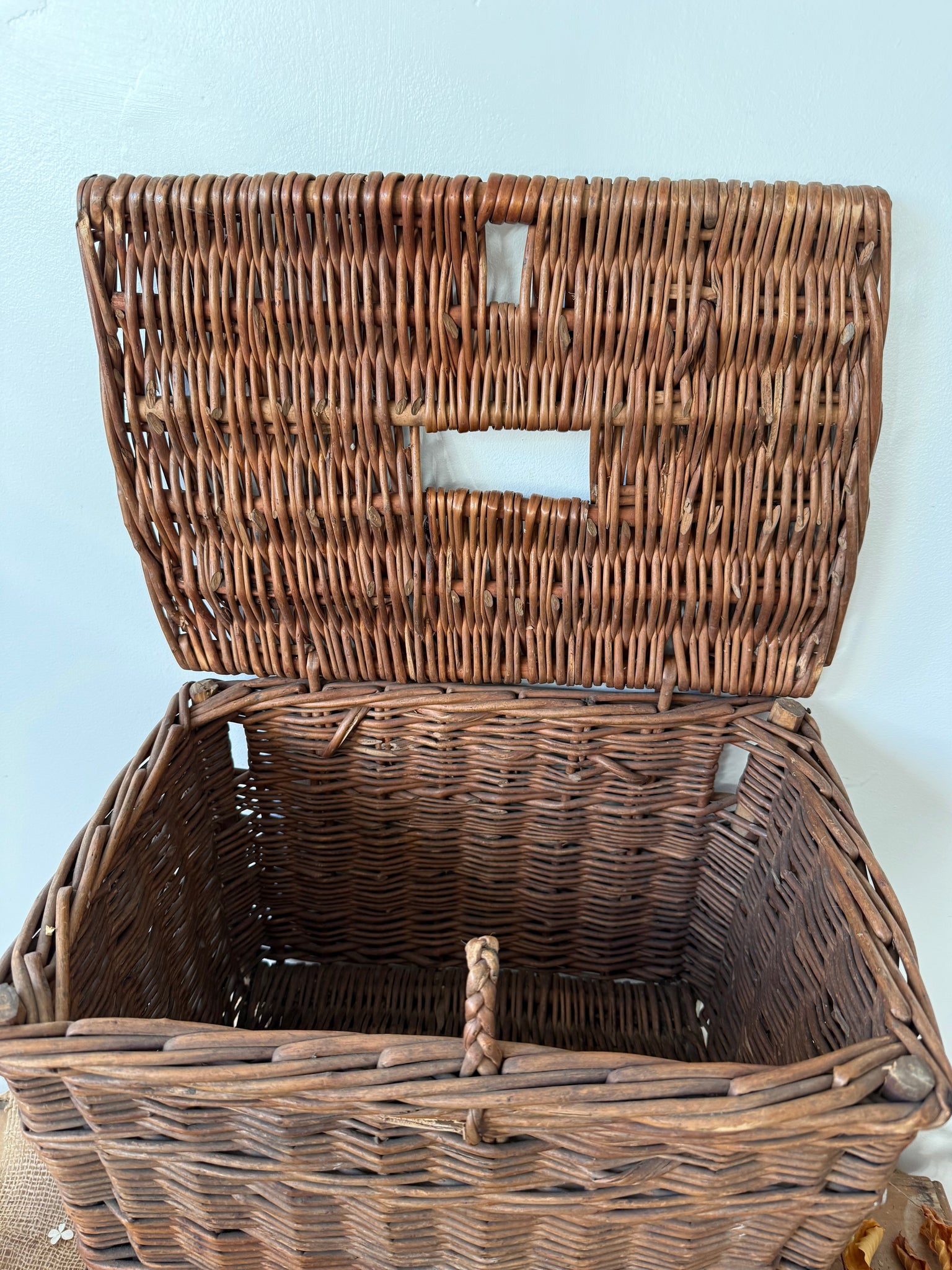 Rustic textured strong and sturdy wicker basket in super condition for his age, would be great for kindling, toys or anything that needs squirrelling away and looks good too. Love its little feet!!