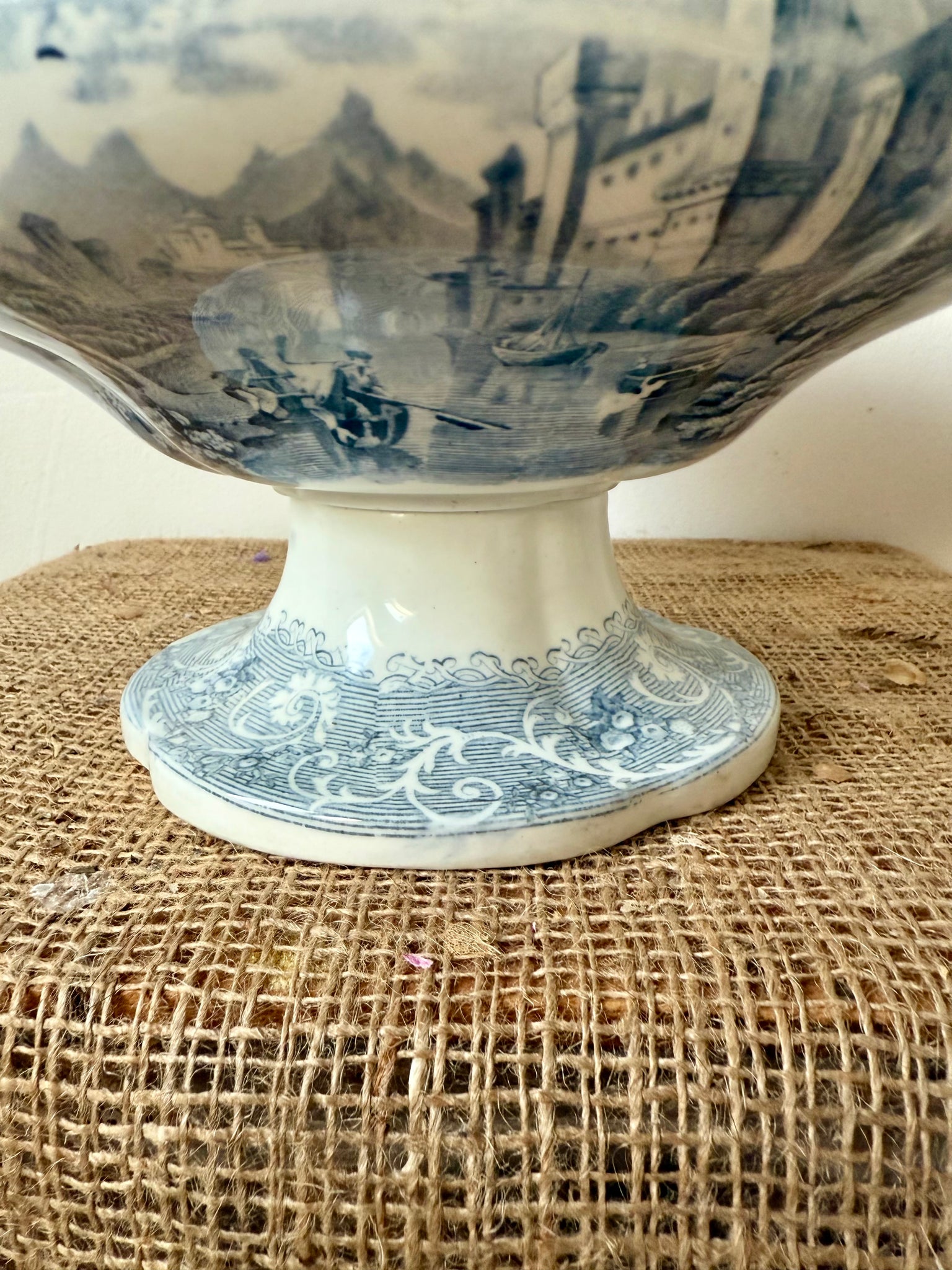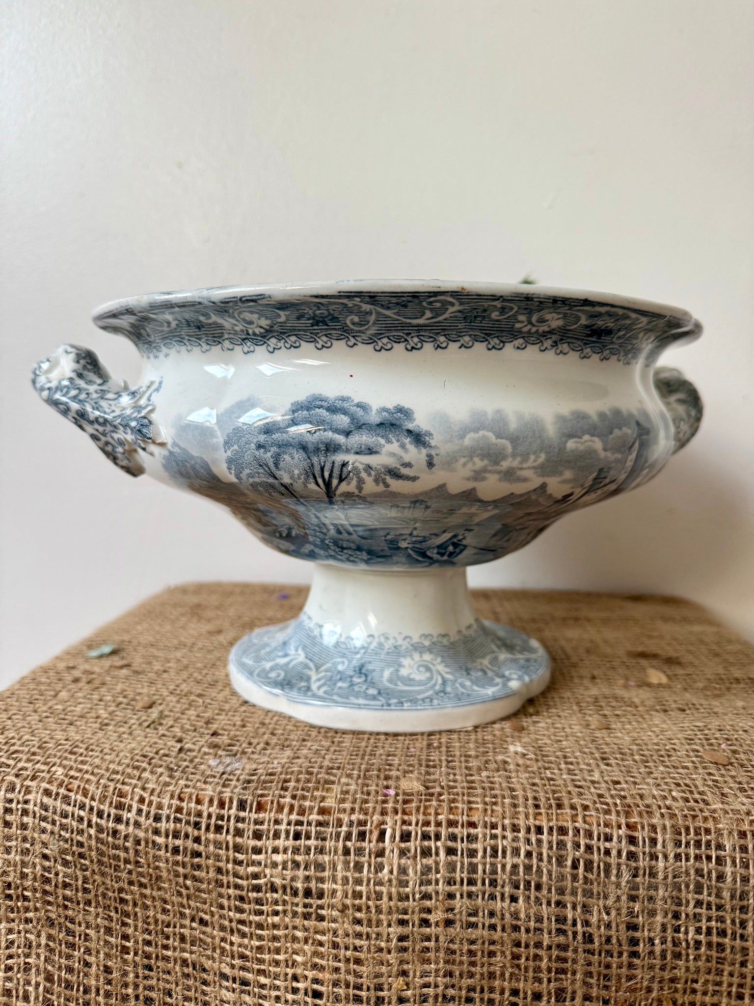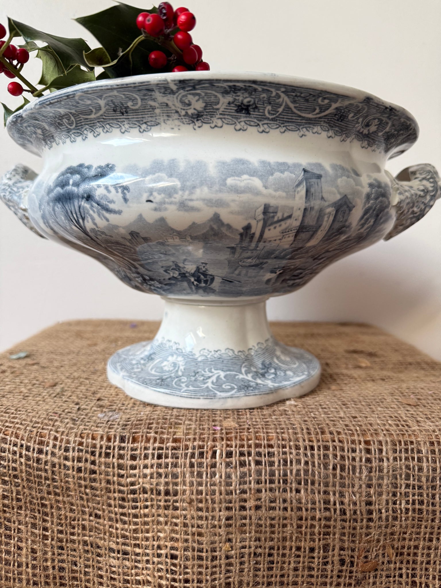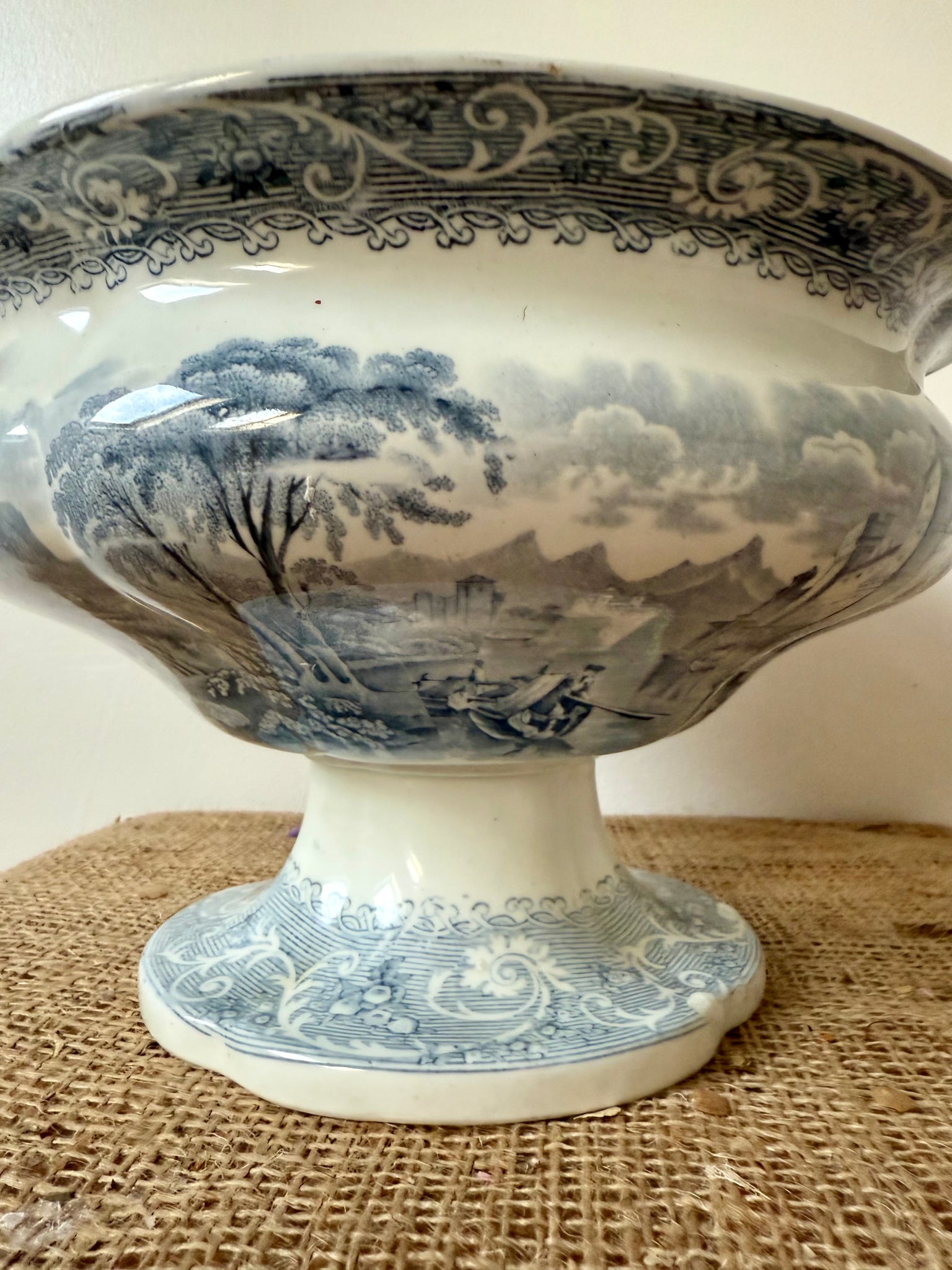 Large bluey grey pedestal soupiere in stunning condition it’s really lovely as it has that height to it. This will look great as a centrepiece filled with bulbs or just filled with punch or something like that for Christmas or New Year’s Eve 16 cm x 31cm