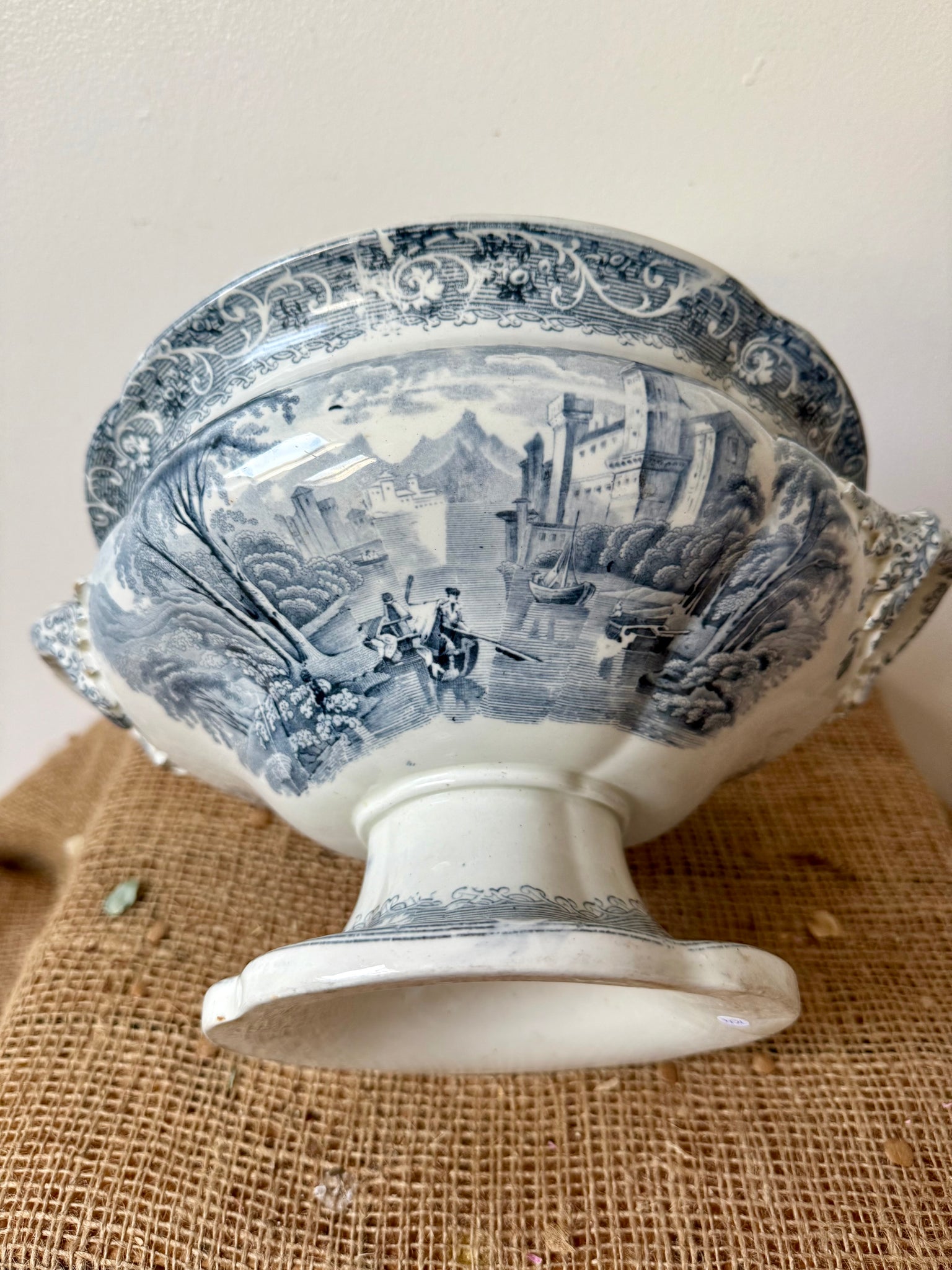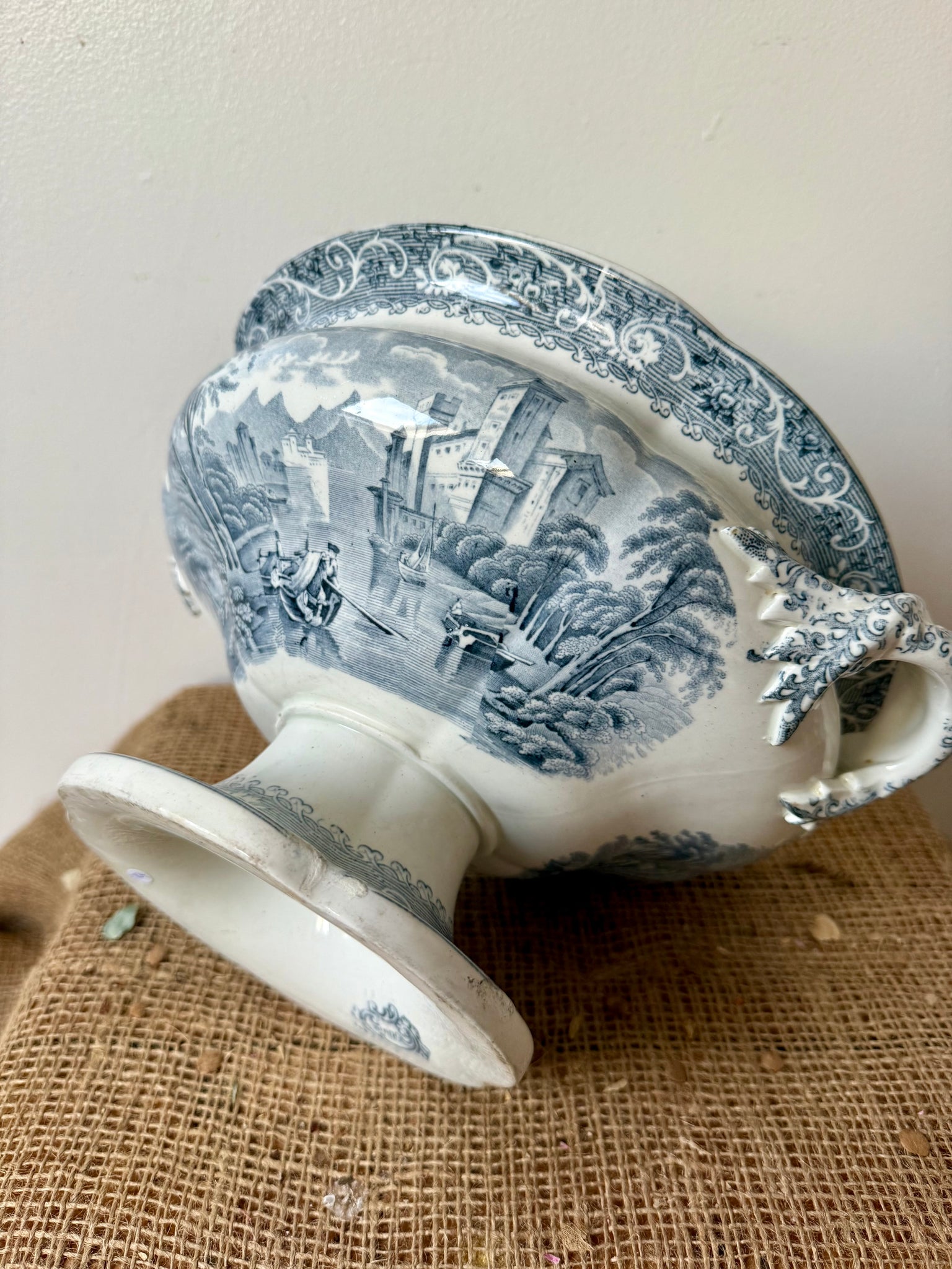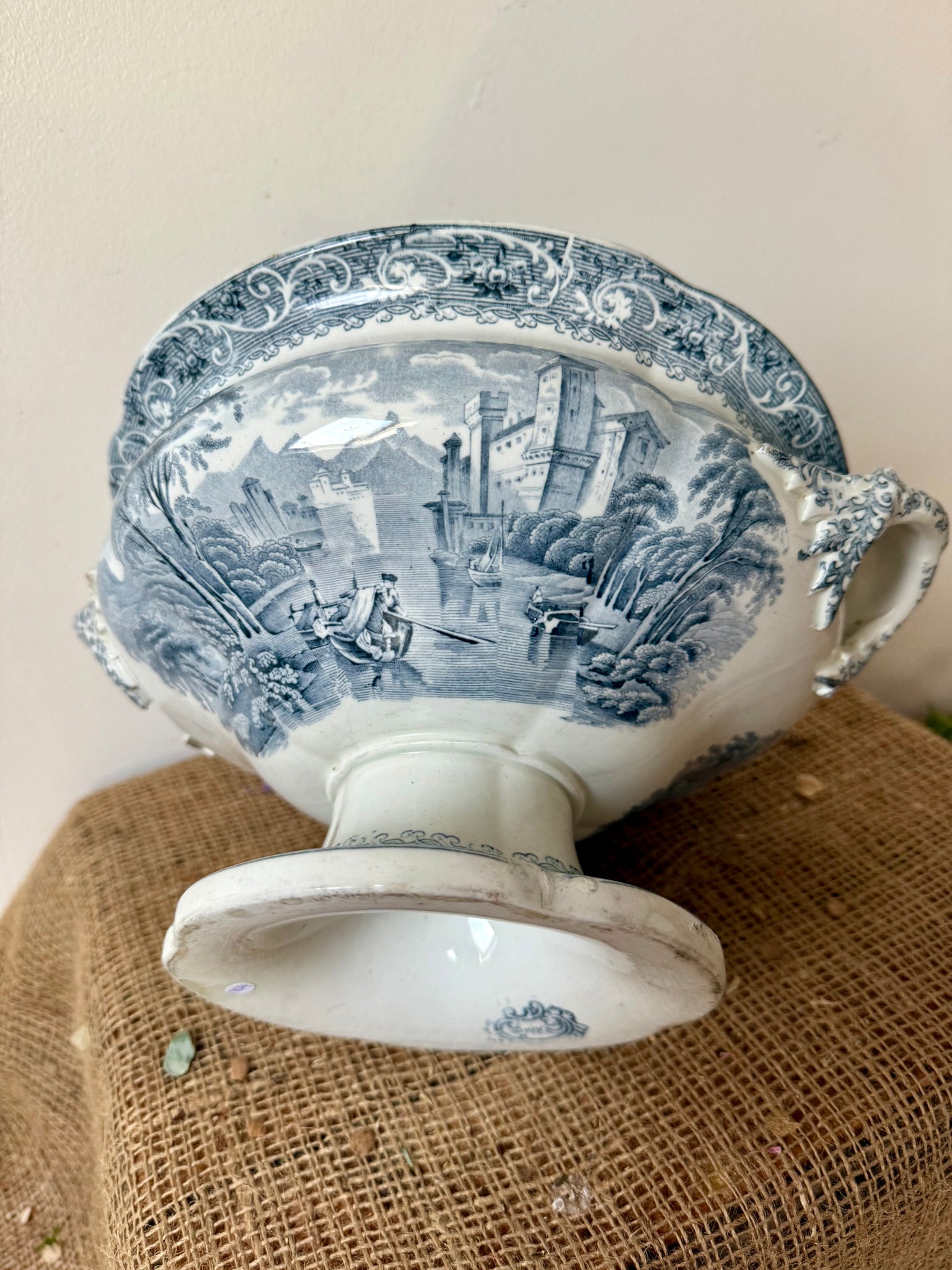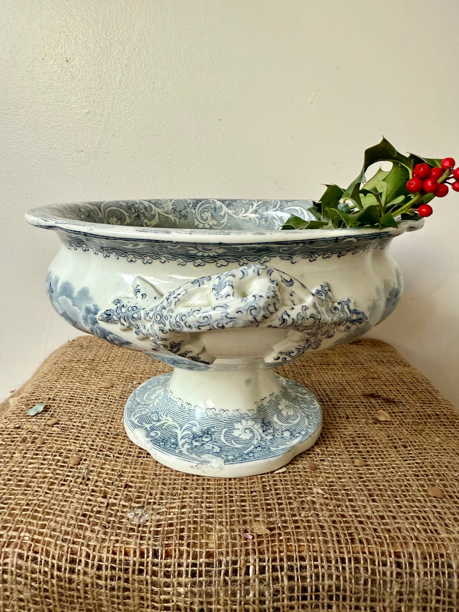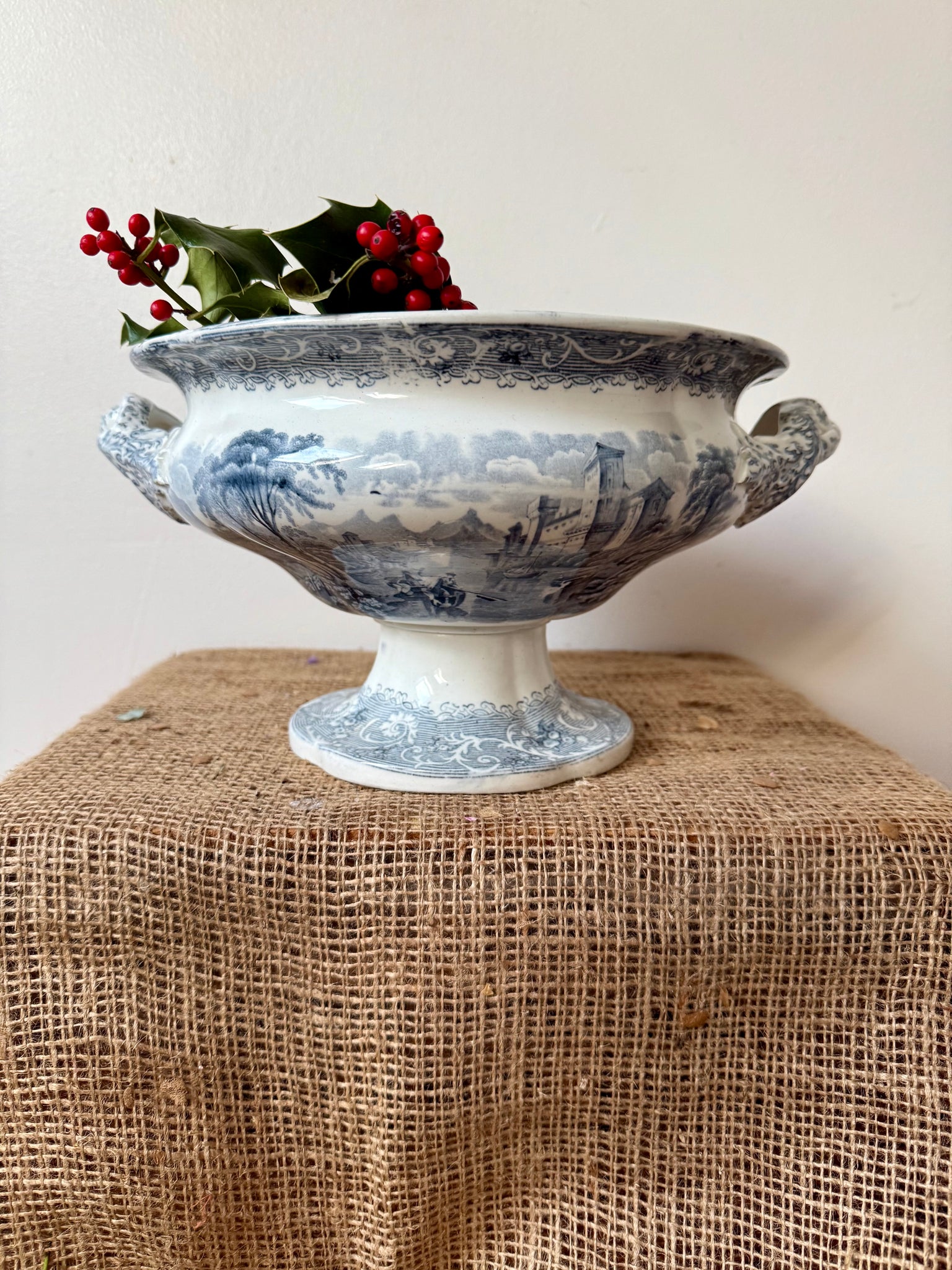 Large bluey grey pedestal soupiere in stunning condition it’s really lovely as it has that height to it. This will look great as a centrepiece filled with bulbs or just filled with punch or something like that for Christmas or New Year’s Eve 16 cm x 31cm