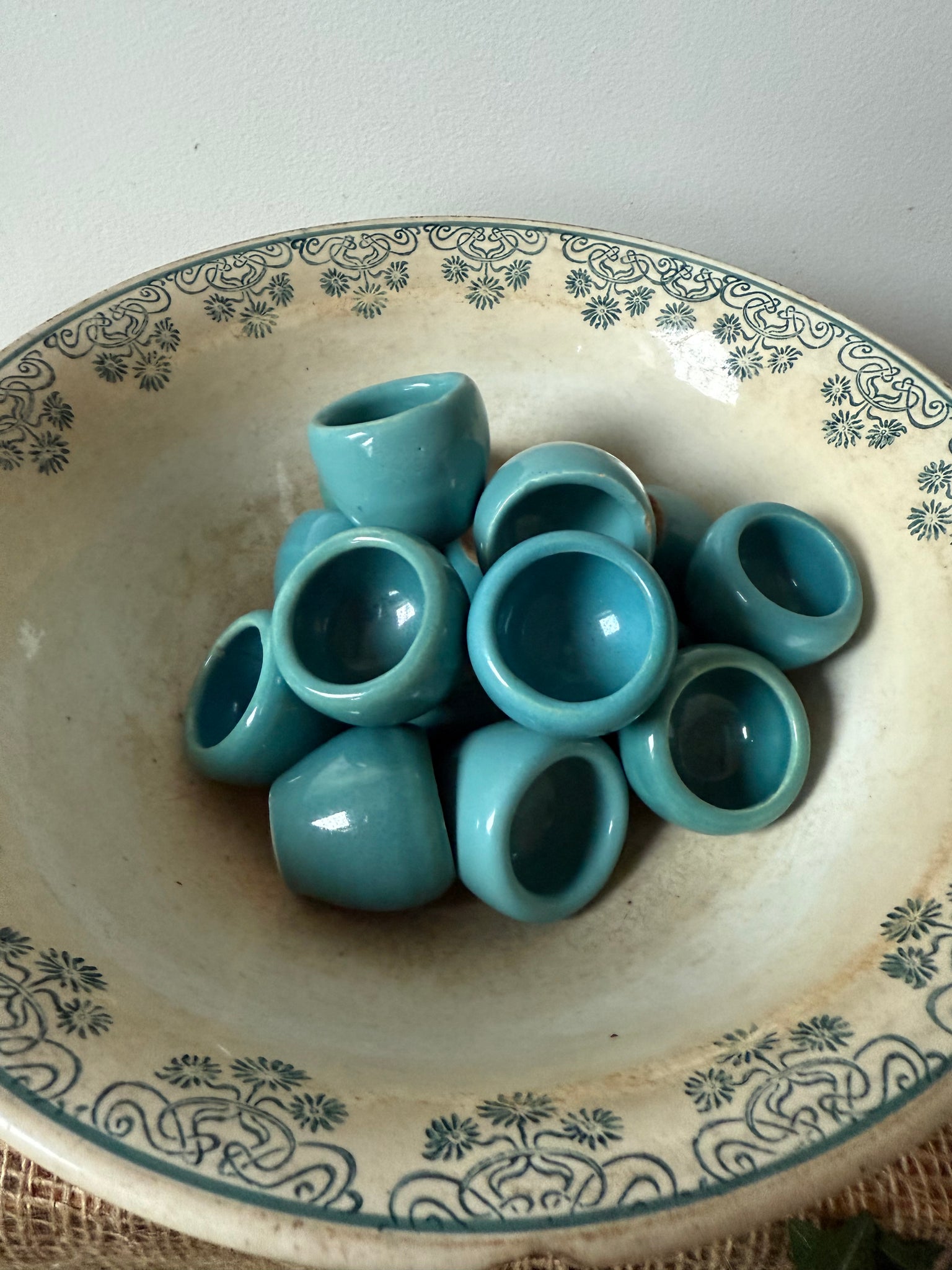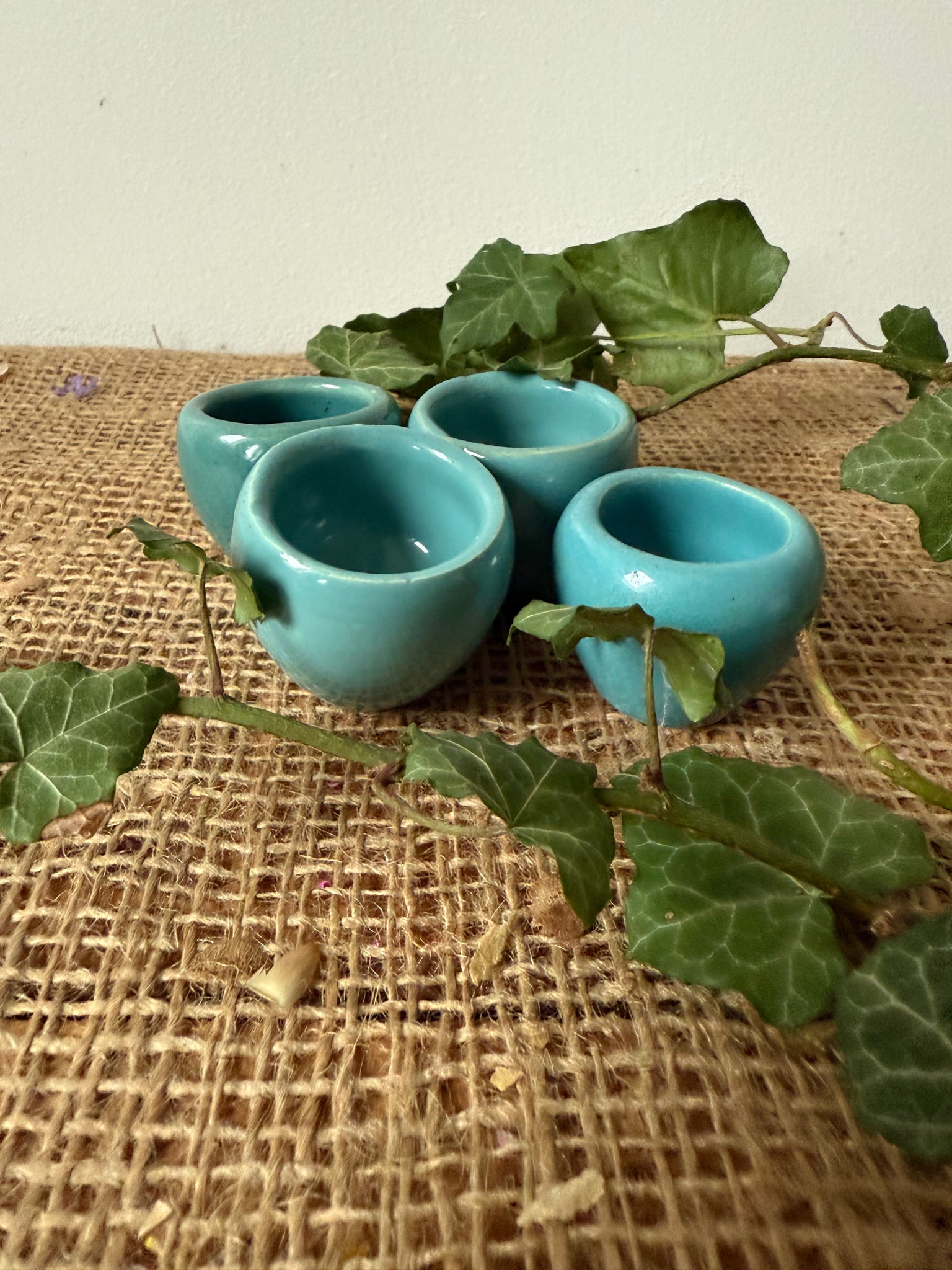 Set of 4 escargot pots in such a beautiful turquoise blue colour 4 cm..thes would look fab dotted other ironstone pieces