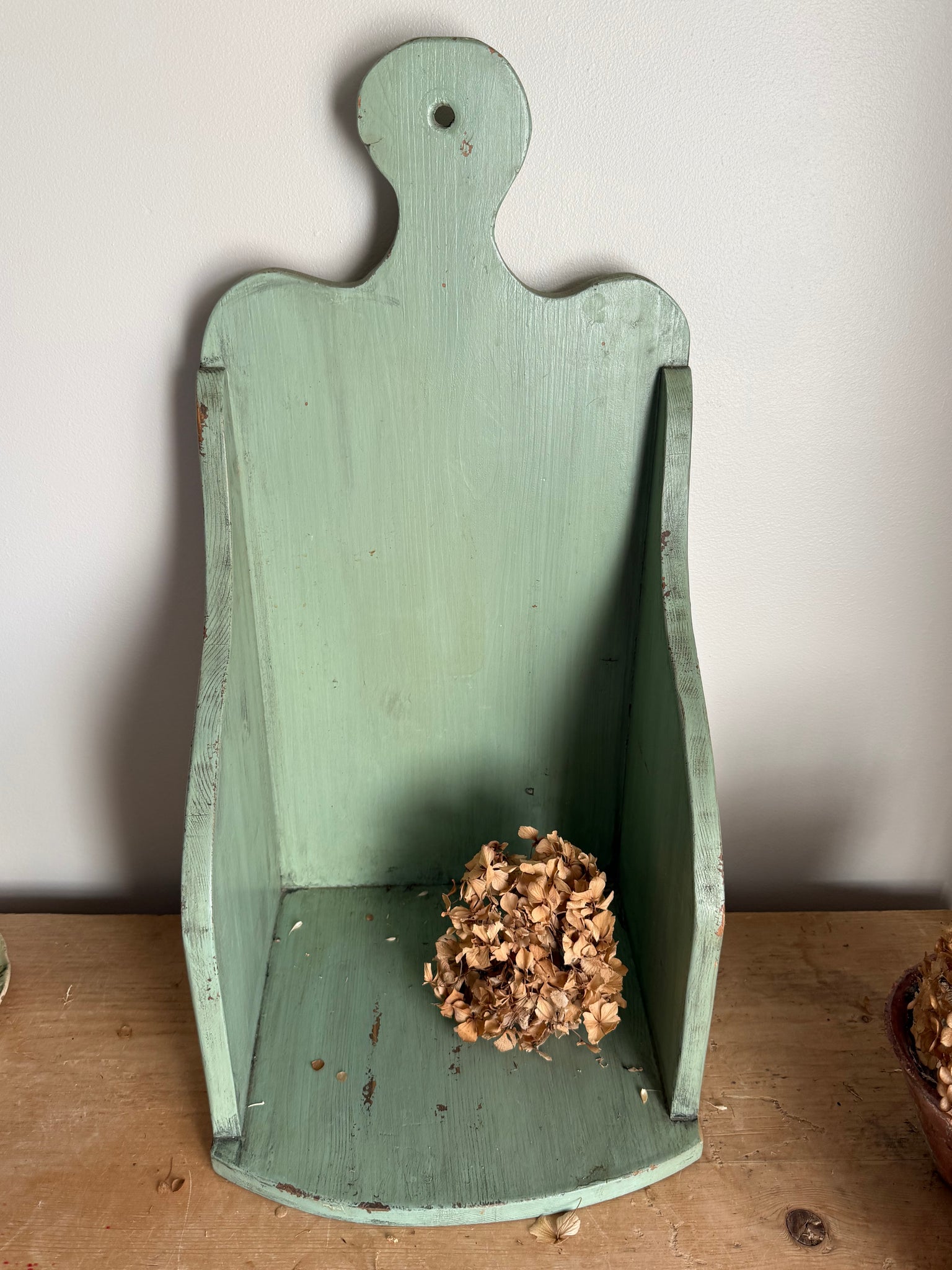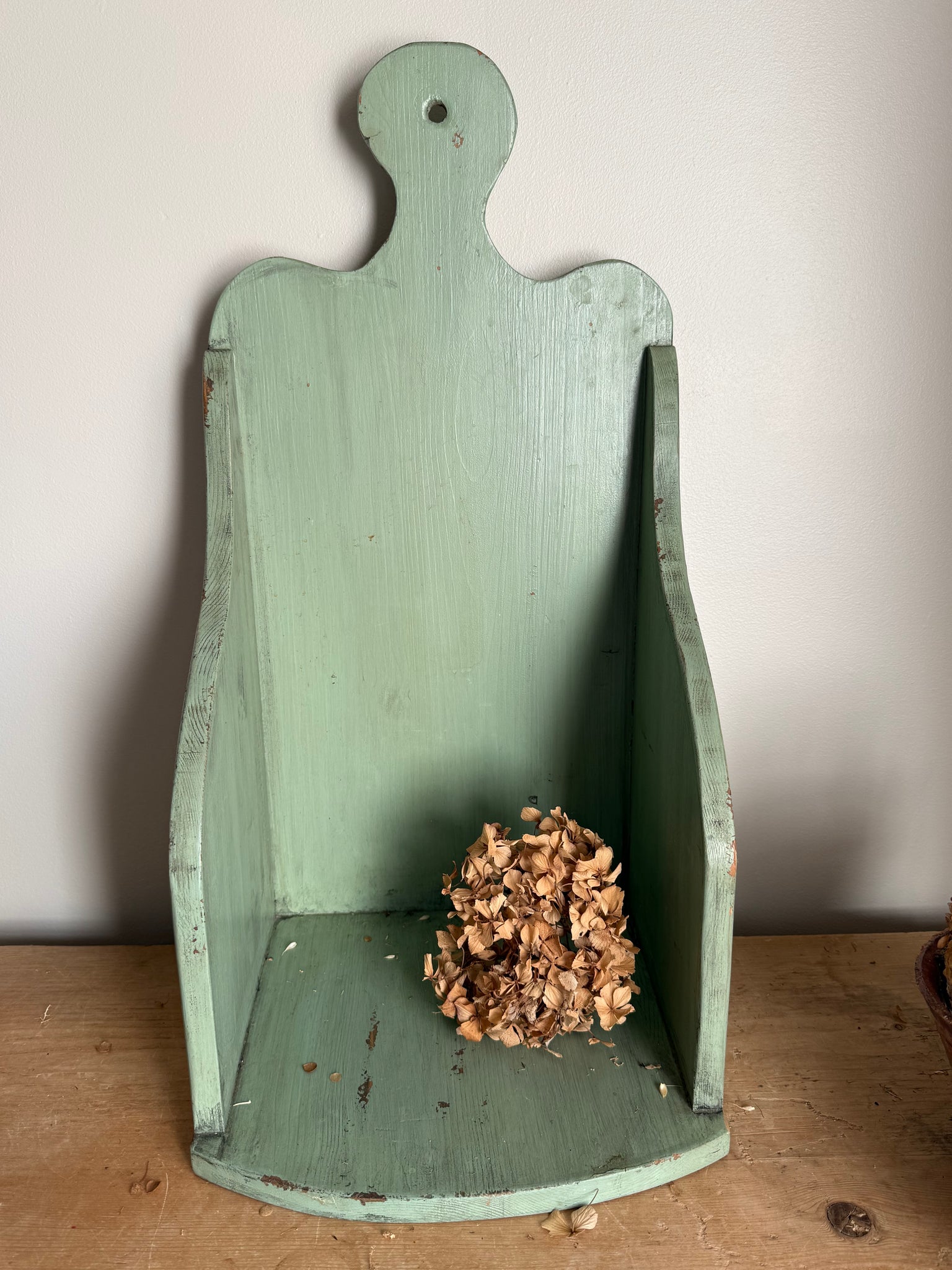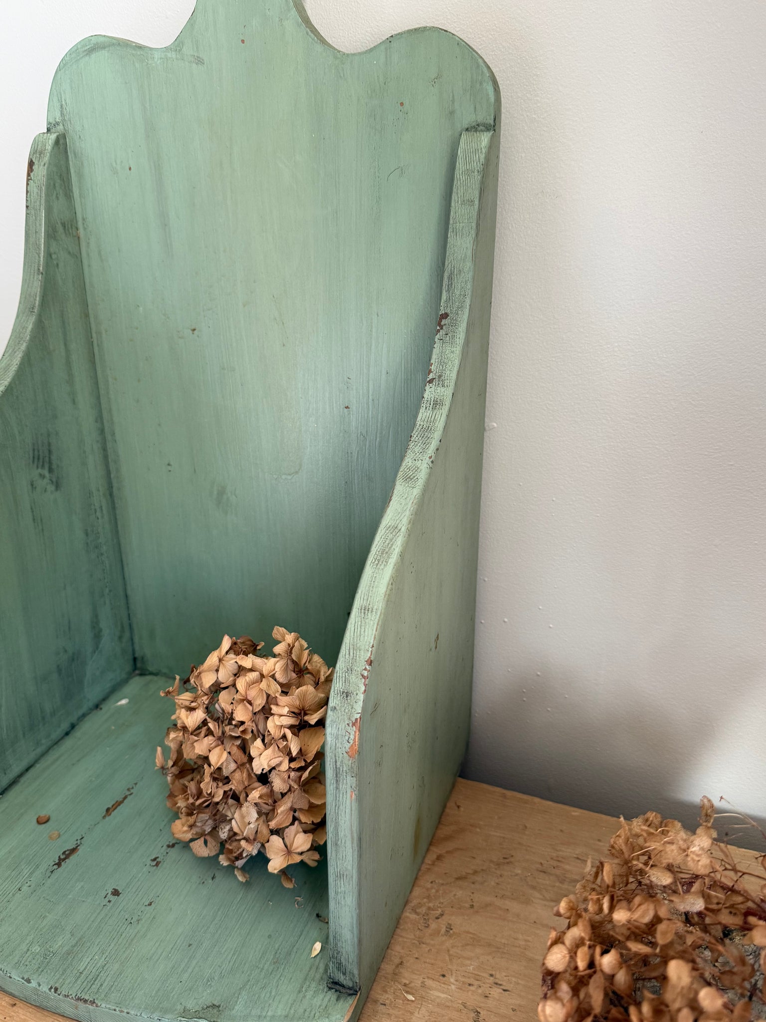 Beautiful green painted chippy vintage French wash box a really lovely size, would make a fantastic shelf or tucked in the corner somewhere filled with your favourite vintage pieces 61 x 24 x30 cm