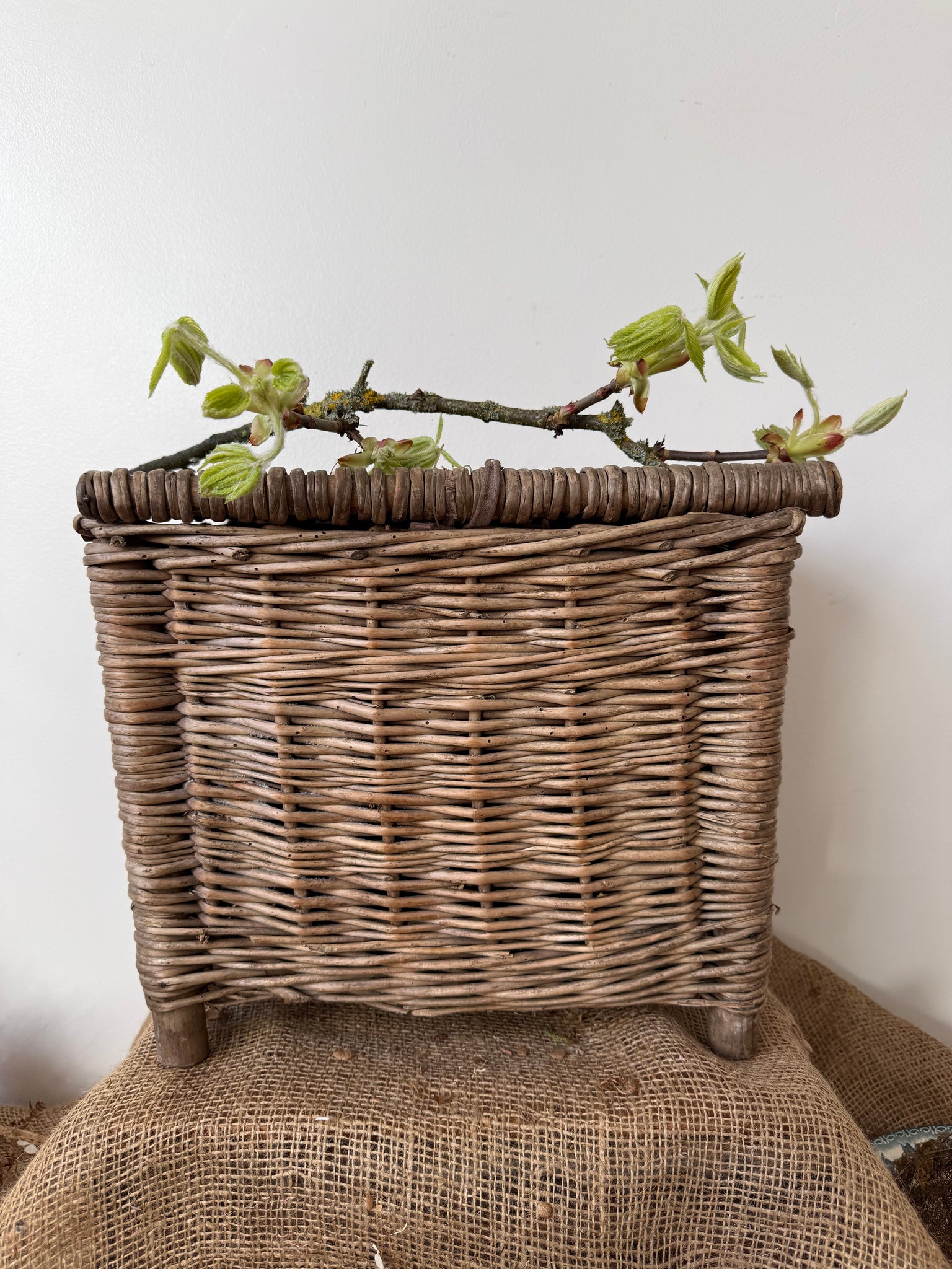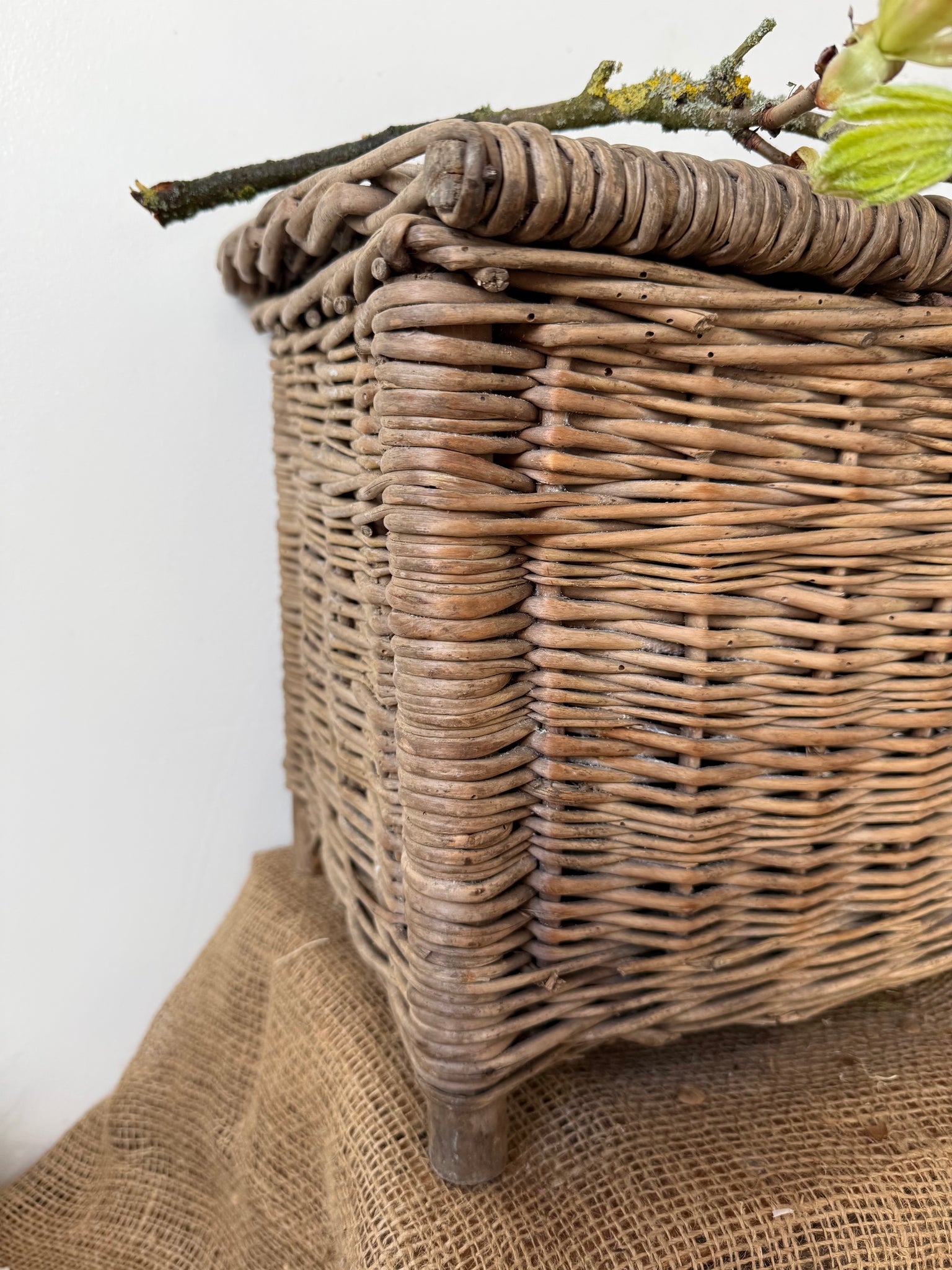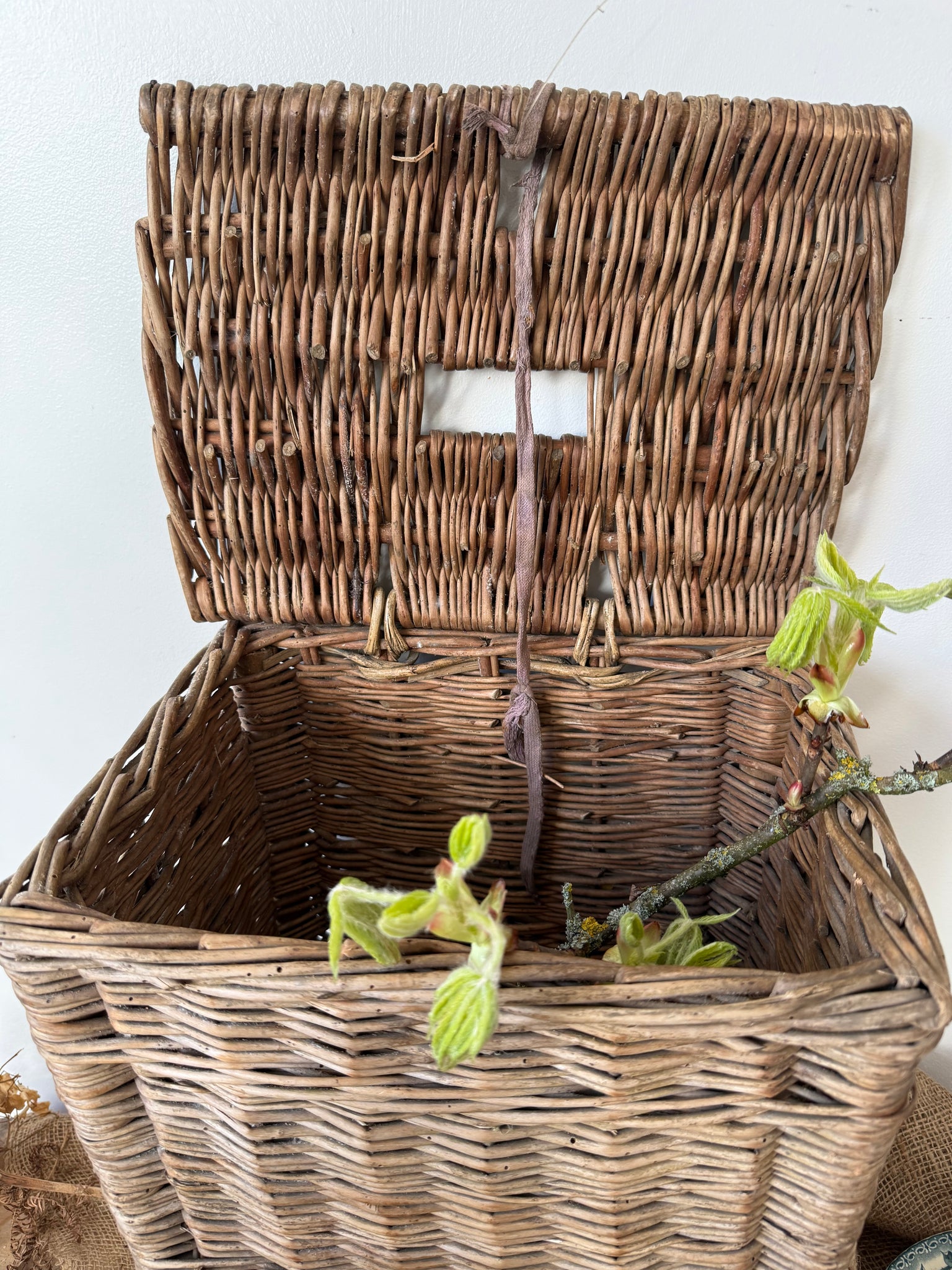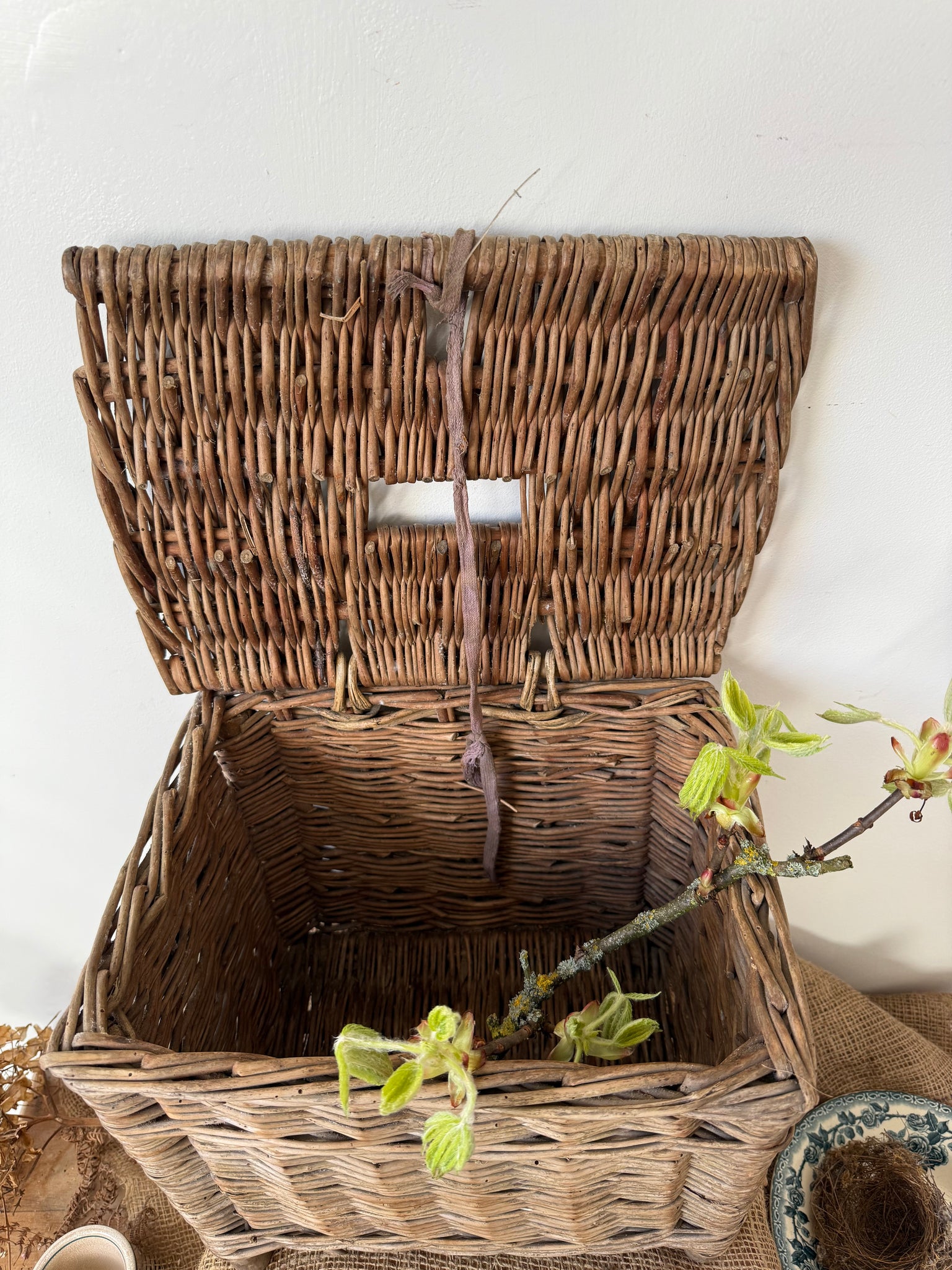 Vintage wicker fishing basket lovely and rustic has been treated for historic wood worm. Just a lovely gnarly piece. Certainly would add texture to a collection 36 x 30 x 25cm